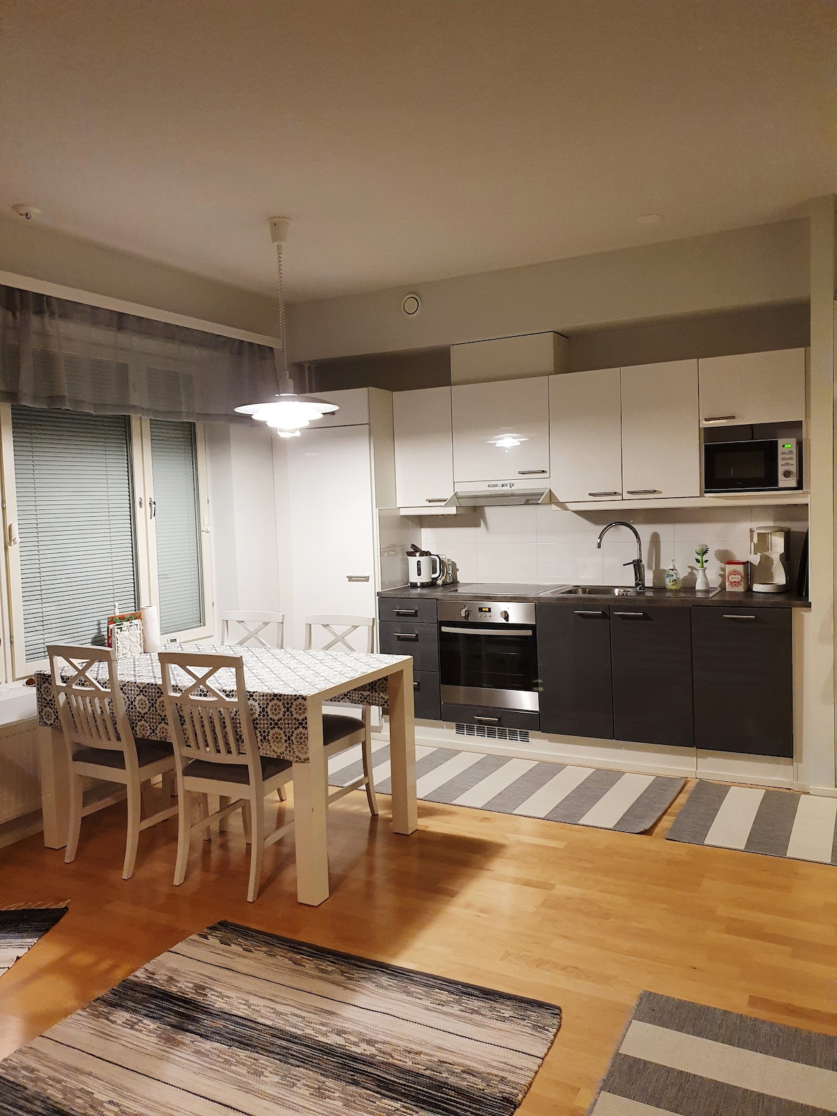 Apartamento lindamente renovado numa excelente localização no centro de Rovaniemi. Está totalmente equipado para que a sua estadia seja o mais caseira possível. • Apartamento elegante de um quarto de 54 m2 com uma espaçosa cozinha aberta • Centro da cidade a um quarteirão de distância • Paragens de autocarro para todas as linhas de autocarro Rovaniemi na rua ao lado deste edifício • Check-in self-service fácil, independentemente do horário - instruções passo a passo com fotos • Estacionamento na estrada em frente ao edifício