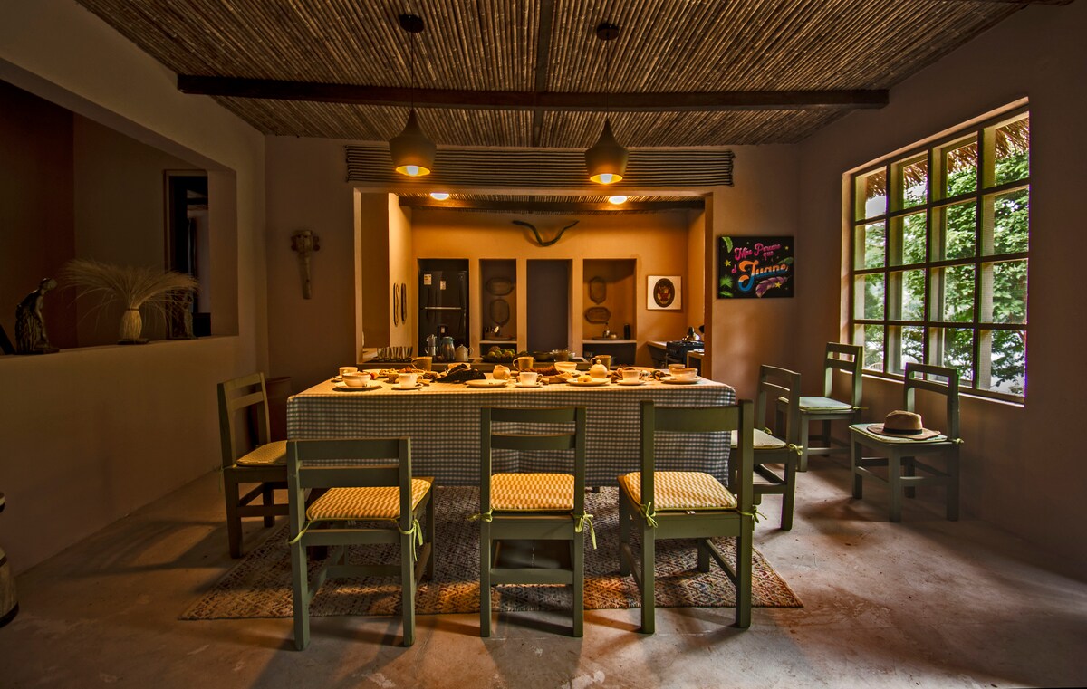 Casa ecológica espaçosa com vista para a lagoa: quatro quartos, banheiro completo em cada quarto, cozinha completa, camas confortáveis, internet e espaços comuns para diversão. Tudo é pensado para que você venha desfrutar da natureza com seus amigos ou família: passeios de caiaque na lagoa, oficinas de cacau, um mergulho na lagoa, uma tarde de jogos... tudo preparado para uma experiência autêntica e inesquecível. Estamos localizados no Ecoparque La Soñada.