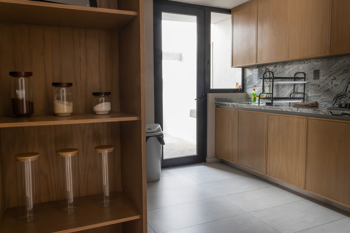 Desfrute de uma experiência de alta altitude neste elegante retiro de estética industrial. O coração da propriedade é o seu terraço privado, um miradouro exclusivo equipado com um churrasco de alto nível, ideal para organizar um jantar privado enquanto o horizonte de Querétaro é tingido de cores ao pôr do sol. A experiência estende-se a todos os cantos do apartamento. Suite de Assinatura: janelas do chão ao teto com vista para a cidade. Cozinha equipada e pratos impecáveis. Conforto e luxo ao seu alcance!