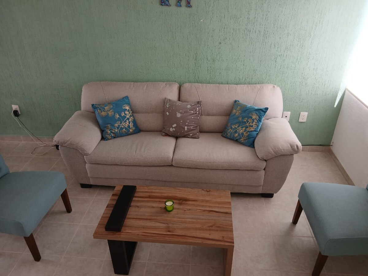 Apartamento funcional e confortável no Marquês, perto do aeroporto, da Universidade Politécnica de Querétaro e dos parques industriais, a 25 minutos do centro da cidade. Partidas acessíveis a áreas turísticas da região (Parque Nacional El Cimatari, Bernal, Amealco, Tequisquiapan).