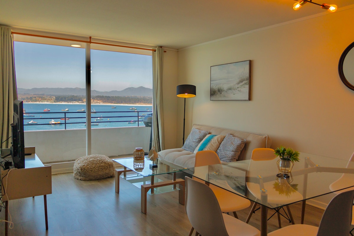 Apartamento à beira-mar, ideal para caminhar, nadar, mergulhar, surfar. Estão perto de restaurantes de Pub, supermercados, feiras artesanais. É ótimo esquecer o manuseio. Perto do parque nacional Puquen. Tem piscina, jacuzzi, jogos infantis, manchas de Quinchos ao lado da área da piscina. Possui uma churrasqueira a gás, terraço fechado e móveis de terraço