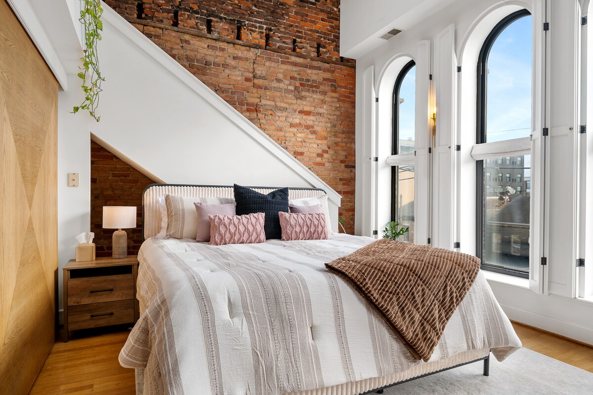 NOVO! | Impressionante Loft Nulu na Market St – Caminhe até todo o lado (92 pontos de caminhada!) Entre num loft elegante e espaçoso no coração de Nulu, o bairro mais vibrante de Louisville. Localizado diretamente na E Market St, este retiro de vários níveis coloca-o a poucos passos dos melhores restaurantes, bares de bourbon, galerias e boutiques, perfeito para explorar. Com entrada privada, acesso total a dois pisos amplos e espaços cuidadosamente concebidos, este loft é ideal para grupos, casais ou qualquer pessoa que queira uma verdadeira experiência urbana.