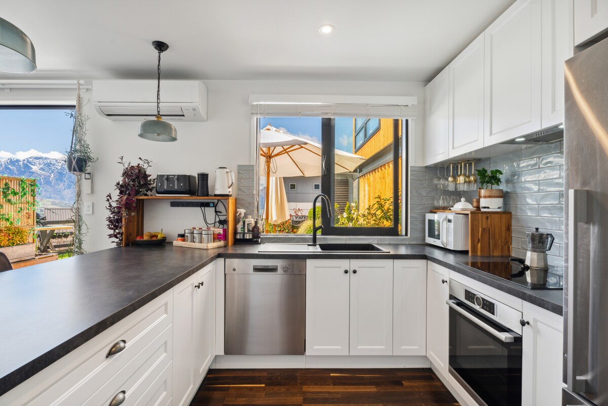 Vistas deslumbrantes da sua sala de estar e quarto. Esta unidade independente moderna (nova 2025) com entrada separada e uma cozinha completa oferece vistas deslumbrantes para a montanha e para a quinta. É quente, ensolarado e tranquilo. Relaxe, descontraia ou termine com todas as atividades repletas de ação à sua porta. A 2 minutos do clube de golfe Jacks point, a 4 minutos da estrada de acesso ao campo de esqui Remarkables, a 10 minutos do aeroporto e do centro comercial Frankton. Há acesso ao lago e trilhos para caminhadas e caminhadas à sua porta.