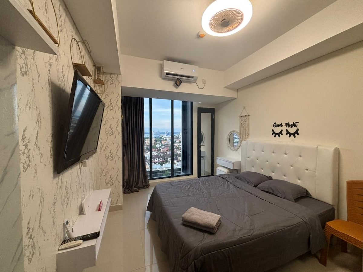 Um estúdio elegante onde você pode passar umas férias relaxantes e refrescantes. É o destino ideal para famílias e casais Nagoya Thamrin City localizado na área mais estratégica de Nagoya com muitos restaurantes, praça de alimentação, lojas e shopping nas proximidades.