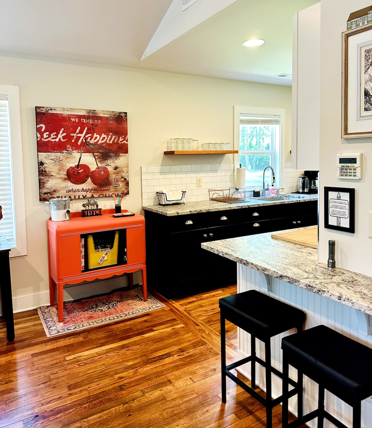 Chalé Craftsman dos anos 1950 completamente renovado, novos móveis contemporâneos, 2 quartos, comodidades modernas, todos os confortos de um lar. Localizado apenas a uma curta caminhada do centro de Hendersonville. Pisos de madeira, móveis novos, camas luxuosas, cozinha atualizada, máquina de lavar/secar, banheiro atualizado, Smart TV e Internet de alta velocidade. Observe que o apartamento "Blue Haven Studio" está anexado à parte de trás desta casa, mas é completamente separado com sua própria entrada/teclado e não há espaços compartilhados.