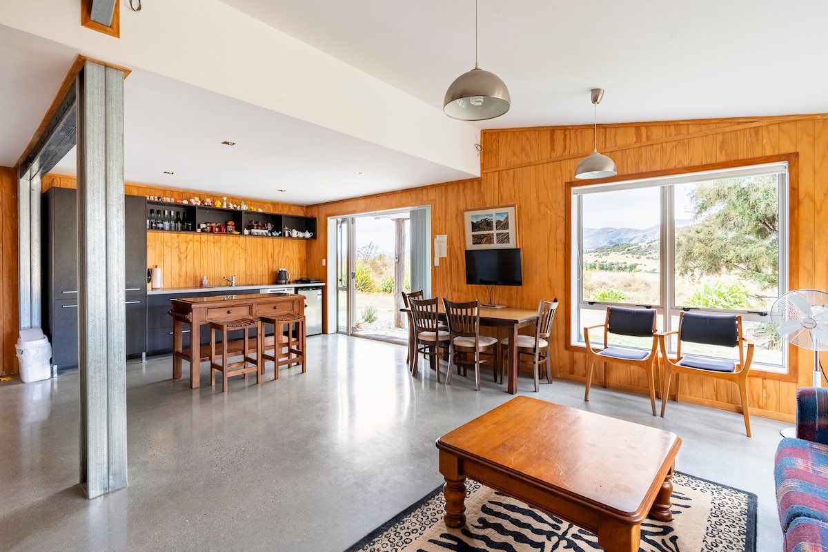 Casa de fazenda tranquila localizada a meio caminho entre Wanaka e Cromwell, a apenas uma curta distância de carro da rodovia 6, a menos de uma hora de carro de Queenstown, em um local protegido cercado por arbustos de kanuka com vistas amplas para a montanha e abundância de vida de pássaros. muito espaço para estacionar seus carros, barcos, flutuadores de cavalos. sim, podemos acomodar seu cavalo também. há 33 acres de terra privada para você brincar. penhascos para escalada nas proximidades, café e adega a uma curta distância de carro.