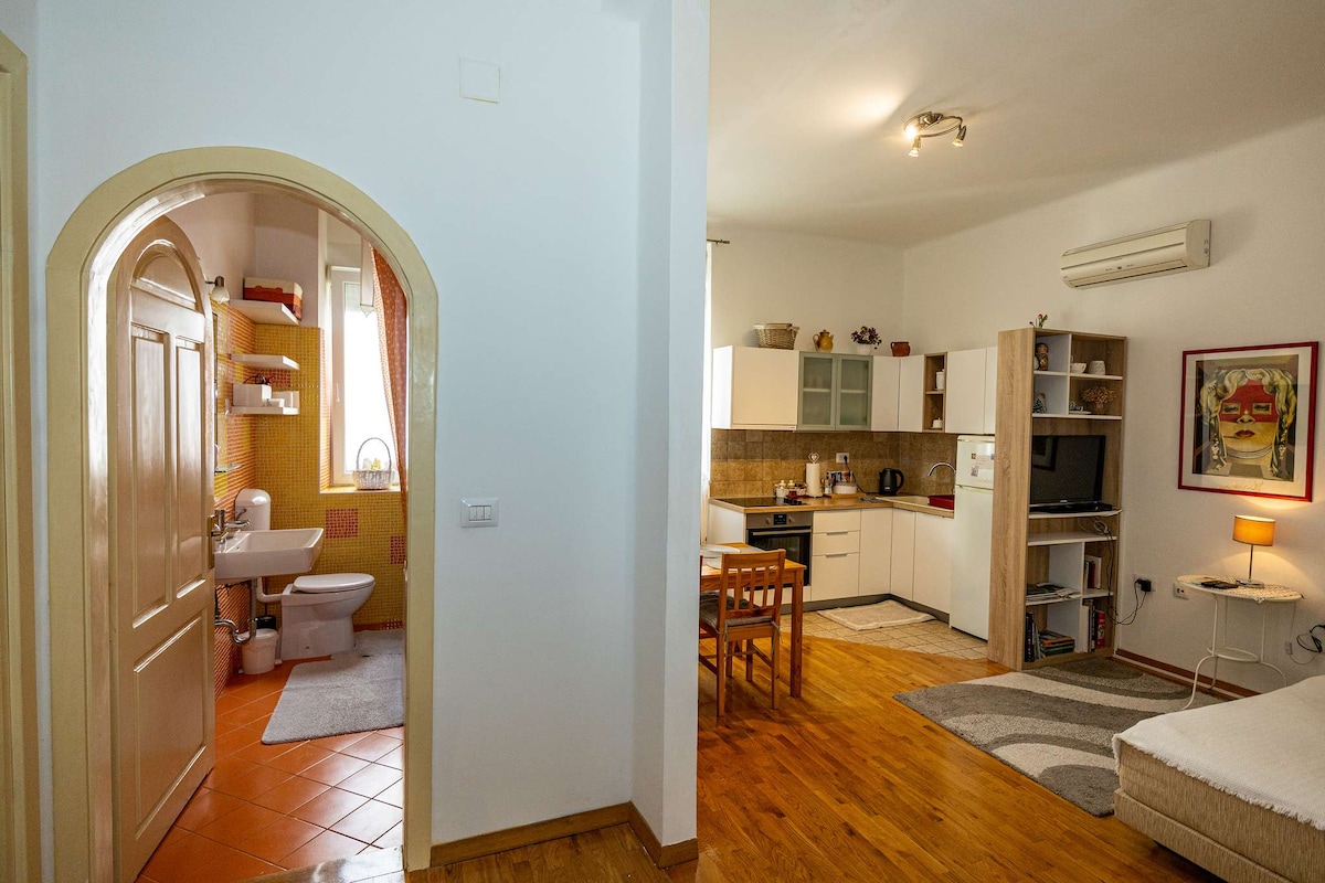 Apartamento luxuoso e recentemente renovado, localizado no centro da cidade - o próprio núcleo histórico da cidade. O apartamento está equipado com tudo o que você precisa para umas férias agradáveis, como uma cozinha com todos os utensílios de cozinha: chaleira, placa de vitrocerâmica, exaustor, micro-ondas e geladeira. No apartamento, você também encontrará uma cama confortável, TV via satélite, Wi-Fi gratuito e ar-condicionado. O apartamento está equipado com um chuveiro walk-in e todos os cosméticos necessários para a sua estadia. A vista do apartamento se estende até o Palácio Providura