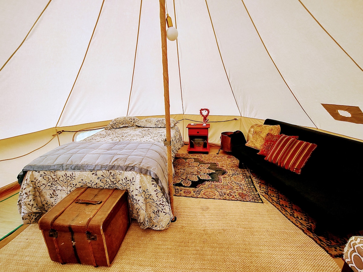 Experimente a definição de glamping nas nossas tendas Belle fora da rede, um retiro sereno a apenas 40 minutos de Halifax. Experiência True Off-Grid: — Sem água corrente, energia ou séptica — Acesso acidentado a 1,5 km de cascalho — Serviço mínimo de telemóvel e Wi-Fi: grave as informações de check-in Características da Tenda: — Tendas chiques e roupa de cama macia — Cozinha ao ar livre com churrasco — Notas da Lareira Interior: — Partilhado: chuveiro exterior com aquecimento solar — Compartilhado: Portapotties bem equipada Explorar: — Acesso ao lago + pranchas de SUP — Fogueira pessoal com iluminação solar