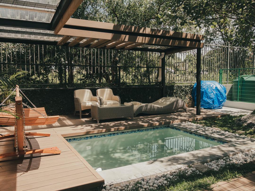 Tranquilo, com localização central. Cama acolhedora no quintal com casa principal, cama queen size, sofá-cama, armário e ar condicionado. Chuveiro, sanita, espaço na cozinha com frigorífico, micro-ondas, fogão a gás. Mesa de trabalho/mesa de jantar e TV com WI-FI. Piscina e barracão com cadeiras exteriores disponíveis. Belo ambiente com árvores e flores. Serviços de limpeza disponíveis. Serviços de lavandaria e engomadoria a um custo. Backup de eletricidade disponível com energia solar. Wi-Fi disponível quando o carregamento está ativado.