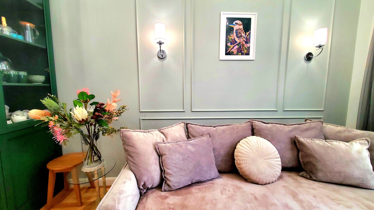 Bem-vindo ao apartamento, cujo design é inspirado por uma viagem à Austrália. Aqui será recebido por um pássaro kookaburra e flores deste país mágico. A sauna aquece, o banho relaxa e a lareira biológica adiciona uma sensação de conforto, paz de espírito e felicidade. A casa, também conhecida como a Casa de Pedra Dukivska, construída no século XVII, é um monumento da arquitetura e está localizada no coração da histórica Lviv. O alojamento espaçoso é adequado para estadias longas e trabalho remoto.