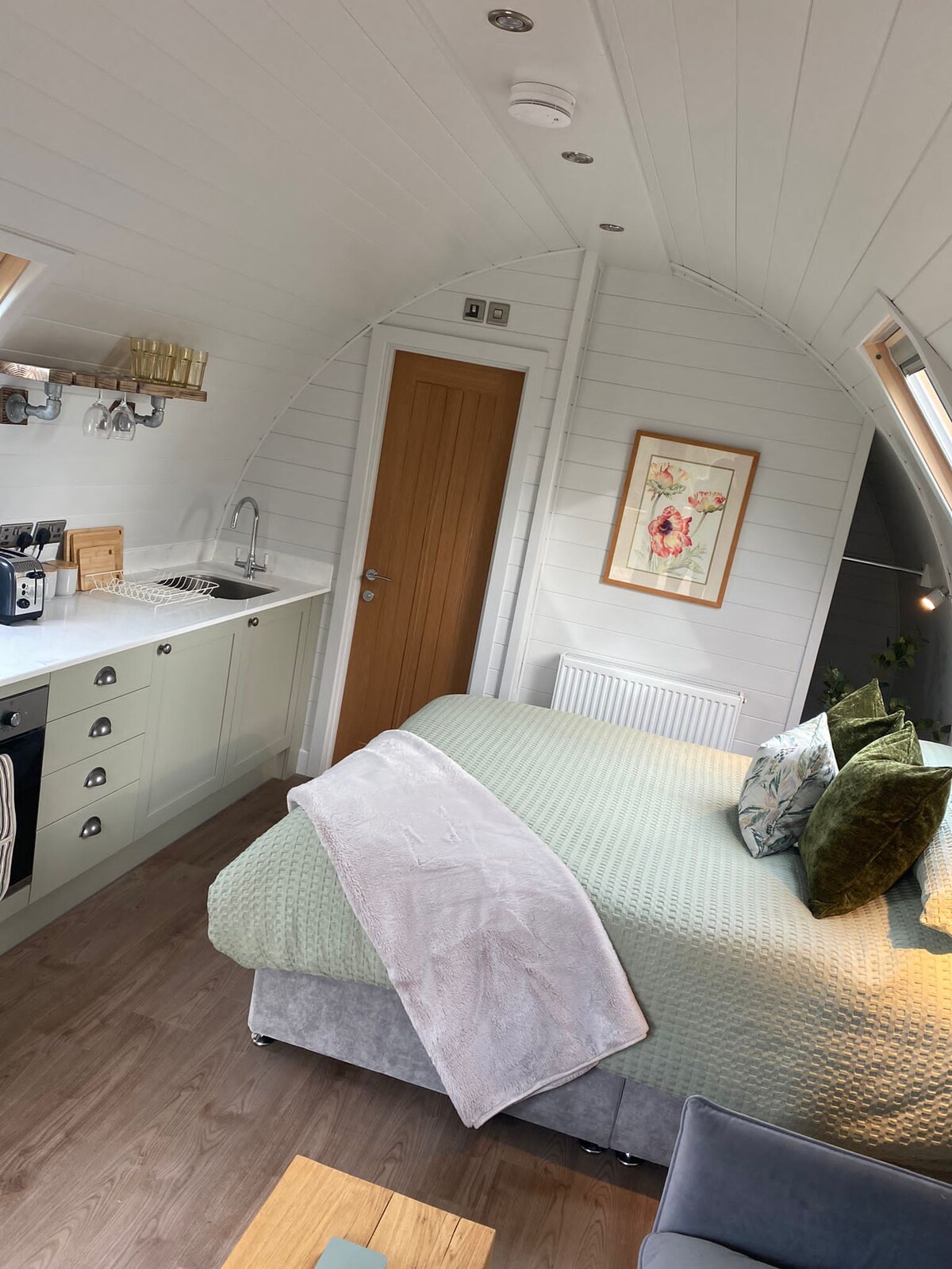 Reconecte-se com a natureza. Aves, abelhas, morcegos e borboletas dentro de um acre de floresta íngreme com a sua abundância de vida selvagem, bem acima do deslumbrante Vale de Teme de Worcestershire. Um contentor de transporte revestido a madeira com dois quartos e um design único, que oferece todos os confortos de uma casa. Água da rede, eletricidade fora da rede com gerador de reserva, aquecimento de piso e água quente a gás GPL, sistema de águas residuais no local. Vida sustentável para hóspedes conscientes da energia. Wi-Fi – BT Full Fibre 500 Não são permitidos animais de estimação, por