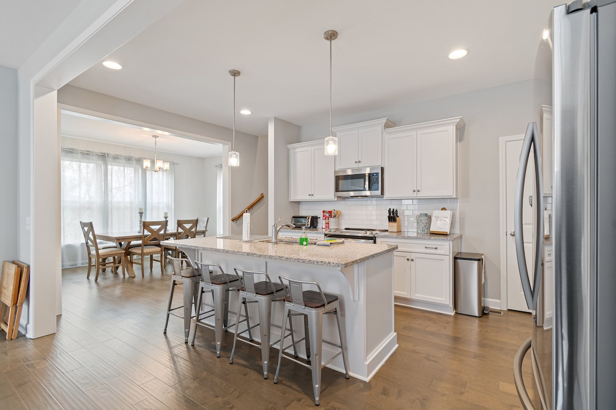 Bonito barndominium novo de 3 quartos/2 casas de banho. A uma curta distância a pé da praça histórica da cidade de Lynchburg e da destilaria Jack Daniel's. BR1 cama queen/casa de banho privada, BR2 cama queen, BR 3 cama queen, sofá-cama queen na sala de estar. 2 casas de banho completas em casa com chuveiros walk-in. Cozinha completa e máquina de lavar/secar roupa. Wi-Fi gratuito/rápido e Smart TV. Estadia agradável e confortável para até 8 pessoas. Pavilhão com churrasqueira, mesas de piquenique, fogueira. Grande jardim lateral, os animais de estimação devem ser aprovados (limite de 2, 25 libras. máximo, taxa de animal de estimação de 30 $).