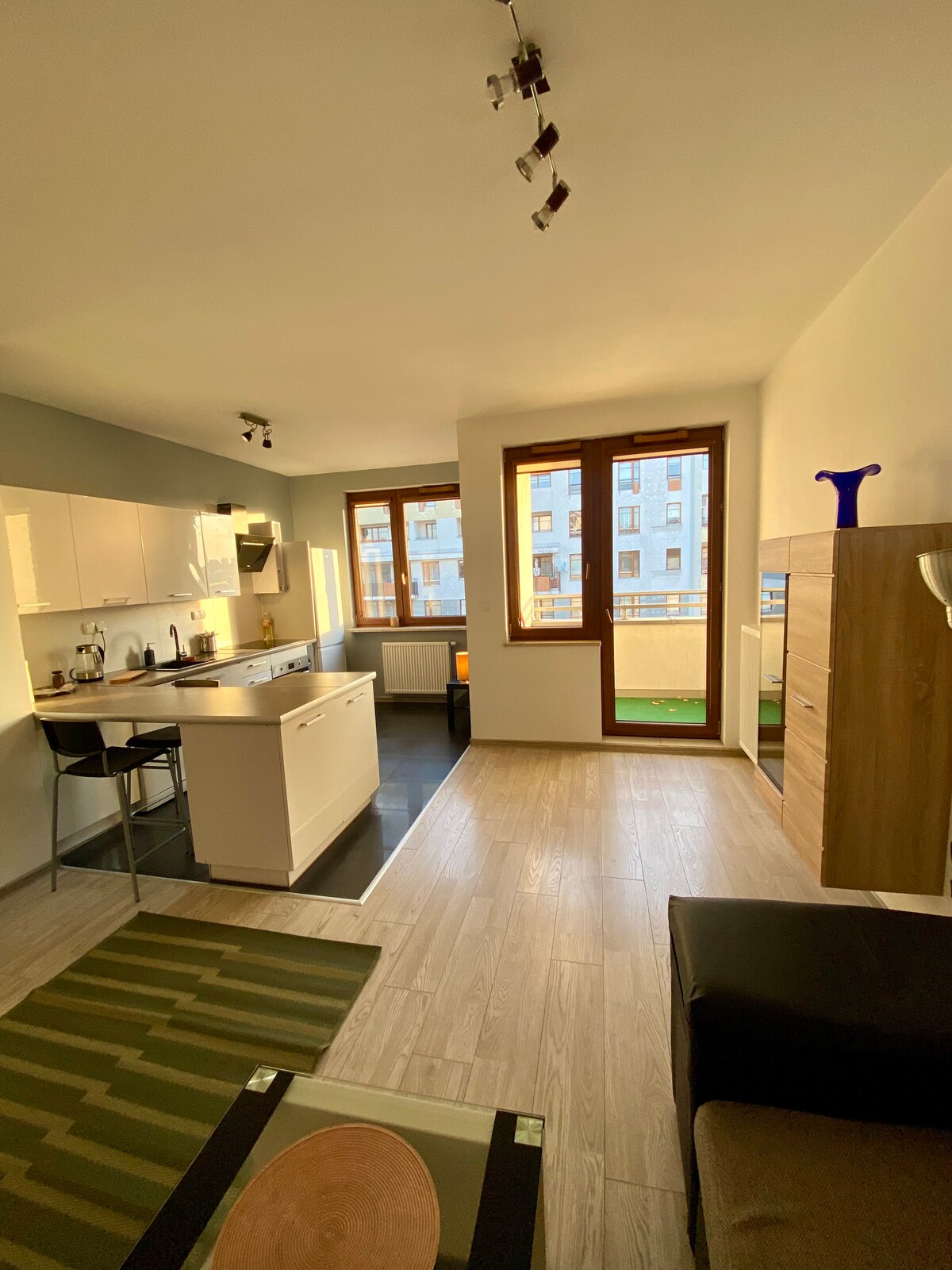 Modern apartment in Bemowo in a new building. A separate bedroom and a balcony will ensure a comfortable stay. Also included in your stay's price is a private garage parking spot. It's a perfect starting point for exploring the city. Right next to Górczewska Park, with shops and restaurants nearby. Are you coming to Warsaw with friends or family? I have two apartments available in the same building. You can enjoy privacy in your own apartment while having your friends or family close by.