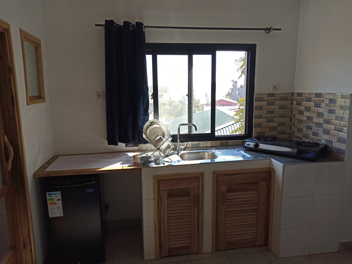 spacieux Appartement T2 meublé avec cuisine équipée, situé au 1er étage d'un petit immeuble en premier plan à Mandrosoa Ambohijatovo, en plein centre ville (moins de 5mn à pied de l'Avenue de l'Indépendance). Accès indépendant. Pour court ou long séjour, vacances ou business. Ménage lundi et jeudi. Possibilité de blanchisserie WIFI haut débit. salle d'eau privée avec eau chaude. Possibilité de réserver à moins de 48H