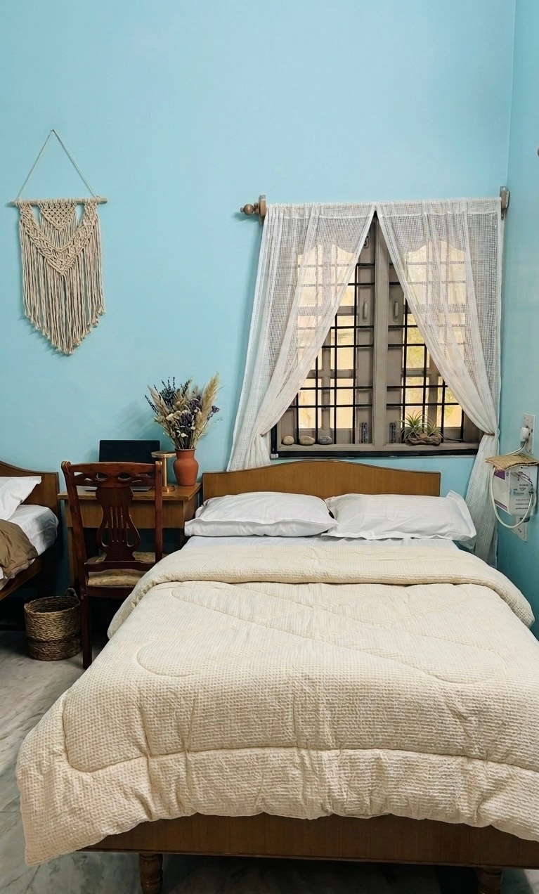 Volte no tempo e experimente o encanto de uma casa Chennai dos anos 90 em Mama Rose. Este paraíso de 2 quartos combina elementos tradicionais – como um moedor de pedra e panelas de barro – com conveniências modernas, como Wi-Fi de alta velocidade, Smart TV com subscrições OTT e uma máquina de lavar e secar roupa. Este anúncio inclui o primeiro andar da nossa casa, com uma entrada privada e pátio para desfrutar da brisa fresca da noite. A vegetação exuberante rodeia a propriedade, com banana, goiaba e macieiras, adicionando tranquilidade.