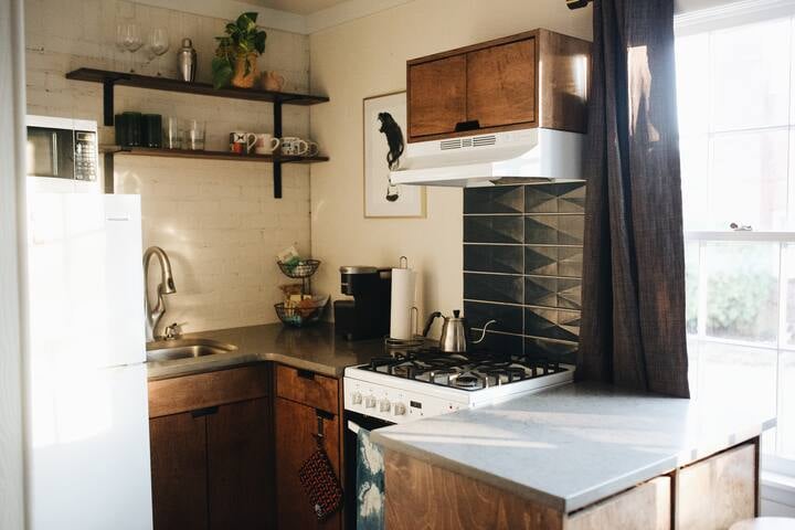 The apartment is called Waffle House because it was the home of Waffle House founder Joe Rogers. The space is a full apartment with kitchen, laundry, living room, bathroom and bedroom with a separate entrance. Located on W Deaderick it’s just a short walk to Restaurants , Farmer's Market, and Hub City Brewing. I am the brewmaster at Hub City Brewing & Rock’n Dough Pizza + Brewery, and my wife works for Hitachi Energy. We live in the downstairs unit so are nearby if there is anything you need.
