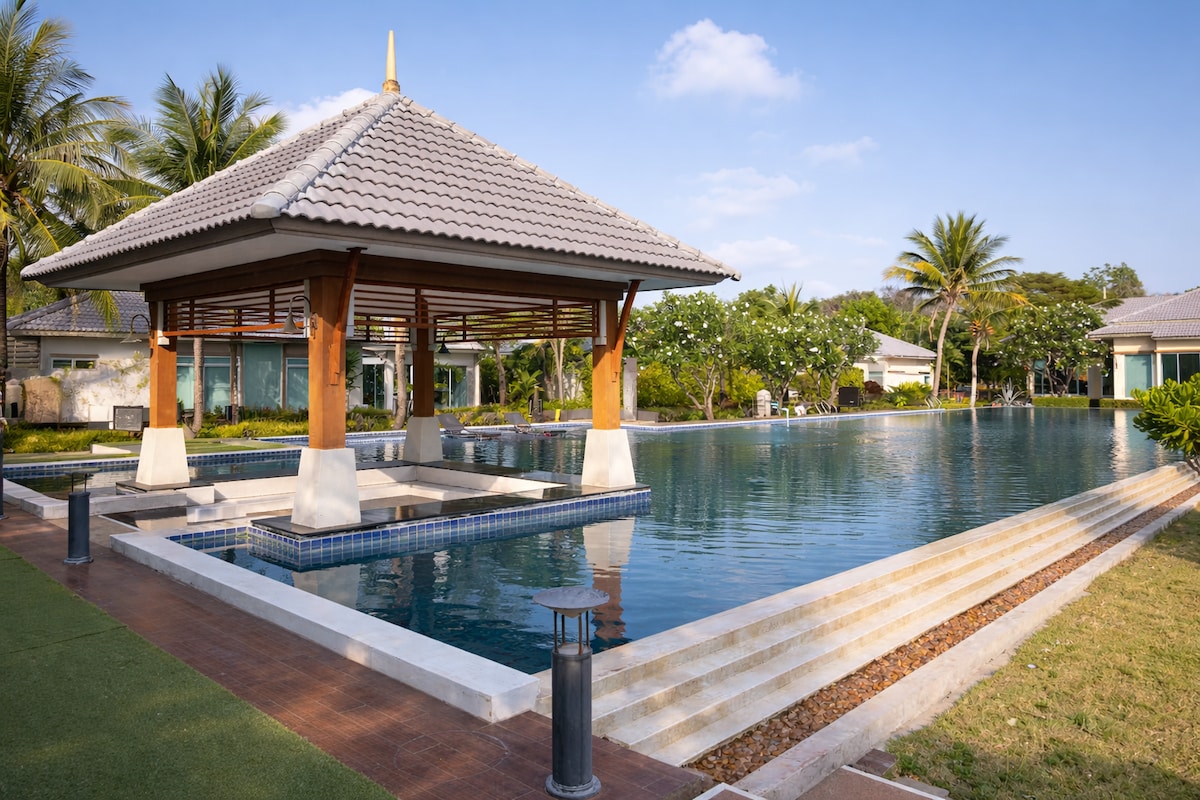 Bem-vindo à CoGarden Luxury Villa 🌿 Uma escapadela perfeita rodeada por natureza exuberante, um pomar de frutas privado e vistas deslumbrantes para as montanhas🏞️. O destaque da moradia é a piscina privada, situada no meio de um pomar tropical🏊♀️, ideal para relaxar em total privacidade. Roupa de cama premium de 5 estrelas 📍 Excelente localização em Rayong, a apenas 10 minutos de carro da praia de Laem Mae Phim, uma das praias mais populares da região.