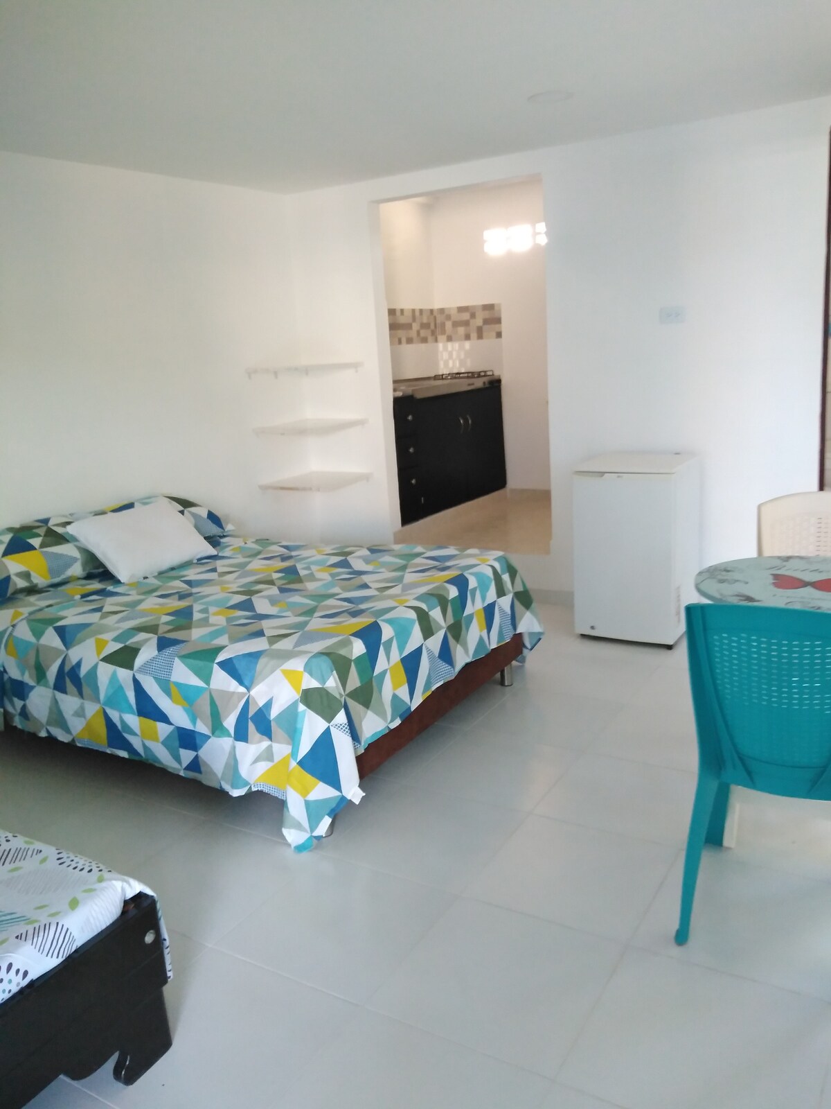 Bairro popular típico Cheerful e Folclore Coastal, a 7 minutos de transporte encontrará belas praias como Taganga e a Baía, e a 8 minutos a pé da estação de autocarros para Tayrona, Buritaca, Palomino, Minca; com ar condicionado, casa de banho grande, cozinha equipada com as básicas, pequena varanda, iluminação natural, ambiente muito confortável, familiar e seguro, 24H estamos a seu serviço dispostos a guiá-lo, facilmente acessível e transporte o tempo todo, em frente a locais com um armazém ARA.
