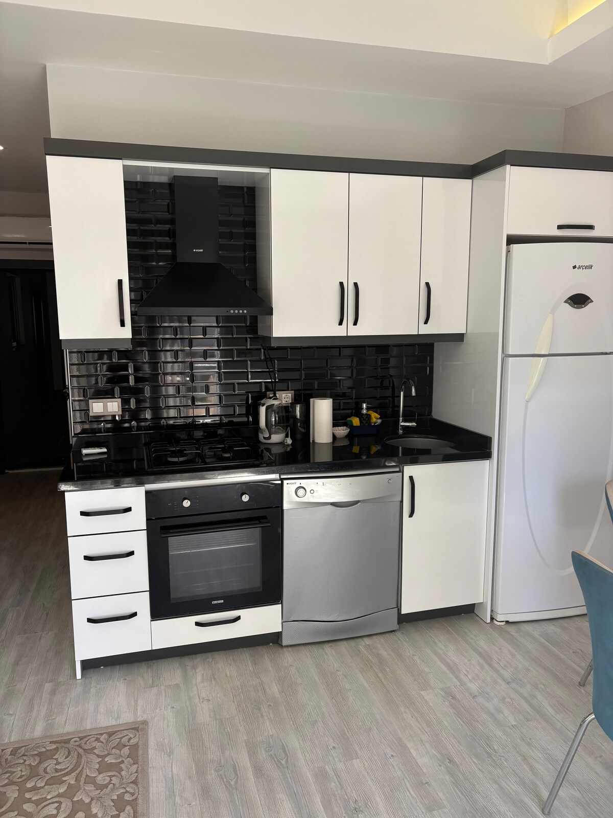 Apartamento 1+1 novo e cuidadosamente mobilado em Alanya Mahmutlar, 1 quarto com cama de casal grande, 1 sala de estar-cozinha com 2 sofás-cama, totalmente equipado com máquina de lavar louça, forno, fogão, geladeira, 1 banheiro com chuveiro, W-Lan com Internet de alta velocidade, TV Samsung/Smart TV, máquina de lavar roupa, todos os quartos são totalmente climatizados. O acesso às instalações é bloqueado para estranhos, o que pede total segurança para os hóspedes.