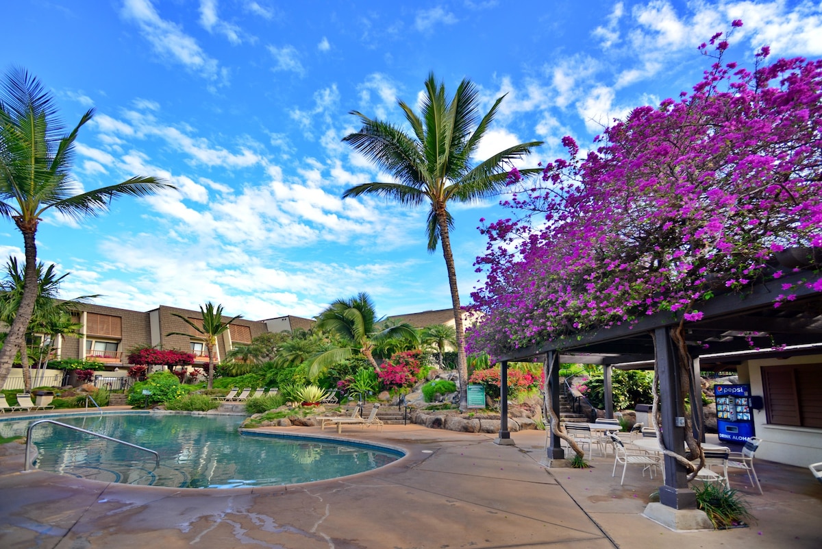 Bem-vindo (a) ao nosso condomínio recentemente remodelado centralmente localizado em South Kihei! Somos uma propriedade licenciada numa comunidade de Hotel Zoned, não afetada pela proibição de arrendamento de curta duração aprovada pelo Conselho de Maui no Projeto de Lei 9. Reserve com confiança! Estamos ansiosos por sair da confortável cama king size e carregar o nosso carrinho de praia com algumas cadeiras e um frigorífico para uma curta caminhada até à praia. Mais tarde, desfrute de algum tempo ao ar livre à sombra no nosso belo espaço privado no lanai. Paz, relaxamento. Vai adorar Maui!