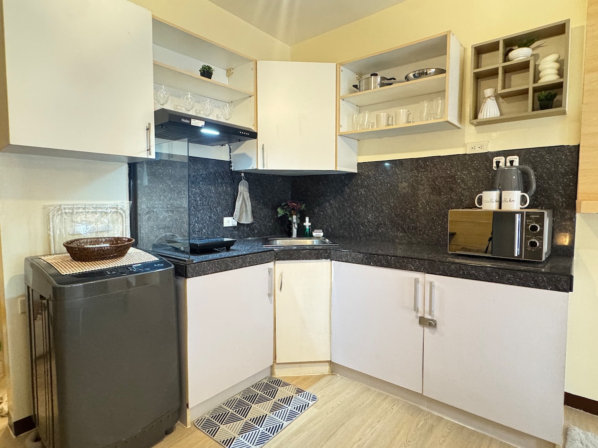 PLEASE READ BEFORE BOOKING 🩷 The Cozy Studio is a fully furnished unit with aesthetic vibes & soothing ambience. It is ideal for relaxation, romantic dates with your love one, movie night with your bestie or spending some time alone. It has fast wifi, perfect for Netflix and chill or K-Drama marathon. Get comfy with Fresh Bedsheets, Pillowcase and Blanket all night. Kitchen may be small but it has your basic needs for cooking. Bathroom is equipped with shower heater for relaxing shower.