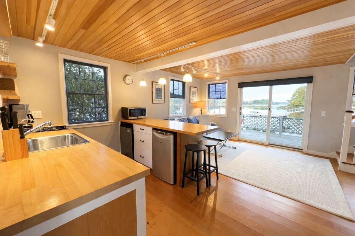 Destaque na VOGUE e na Maine Home + Design, esta cabana moderna e artesanal oferece vistas calmas para o Atlântico, 150 pés de costa e uma doca privada, perfeita para o café da manhã, lançar um caiaque ou observar focas, aves marinhas e barcos que passam. Situada entre pinheiros altos, combina influências nórdicas e japonesas num espaço calmo e composto. Interiores de madeira, pedra, gesso de cal e betão formam um refúgio aterrado, silenciosamente expressivo e construído de forma sustentável. A 1 hora de Portland, mas um mundo à parte.