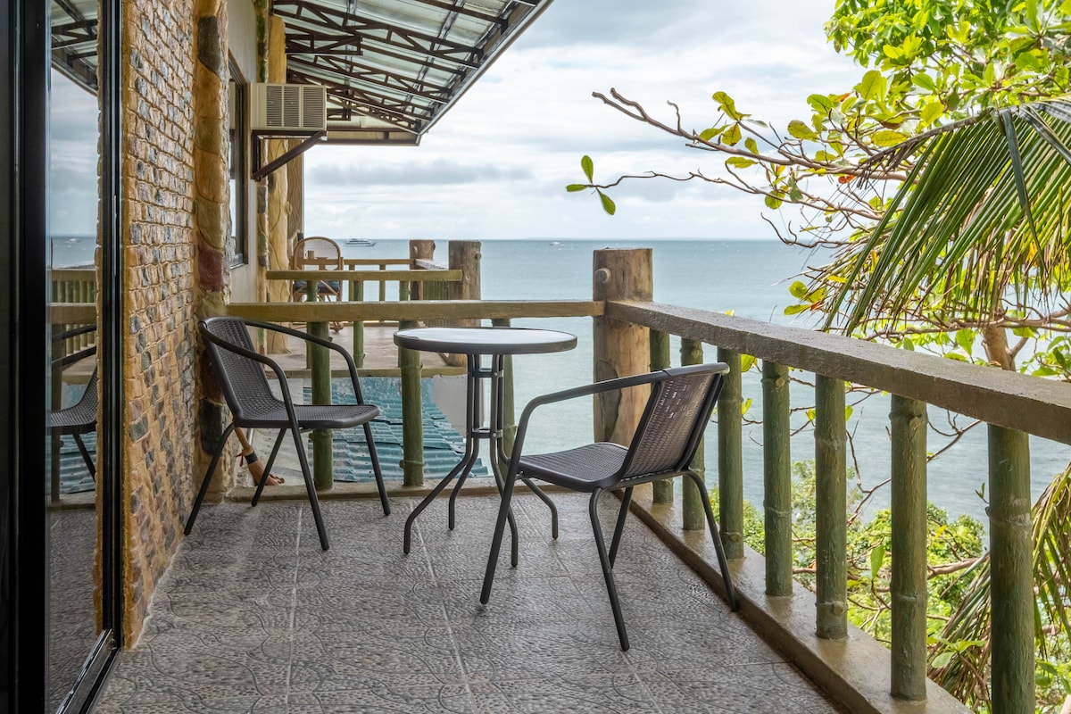Strandhaus direkt am Meer. Der Blick aufs türkisfarbene Meer gehört zum Zimmer dazu. Das neu gebaute Haus oben hat ein Schlafzimmer mit komfortablen Bett und Klimaanlage. Du öffnest die Schiebetür und schaust auf den Ozean und auf den Sonnenuntergang. Ein offener Ess- und Küchenbereich lädt zum Kochen und Speisen ein. Ideal für: Taucher, Paare & alle, die echtes philippinisches Inselleben erleben wollen.