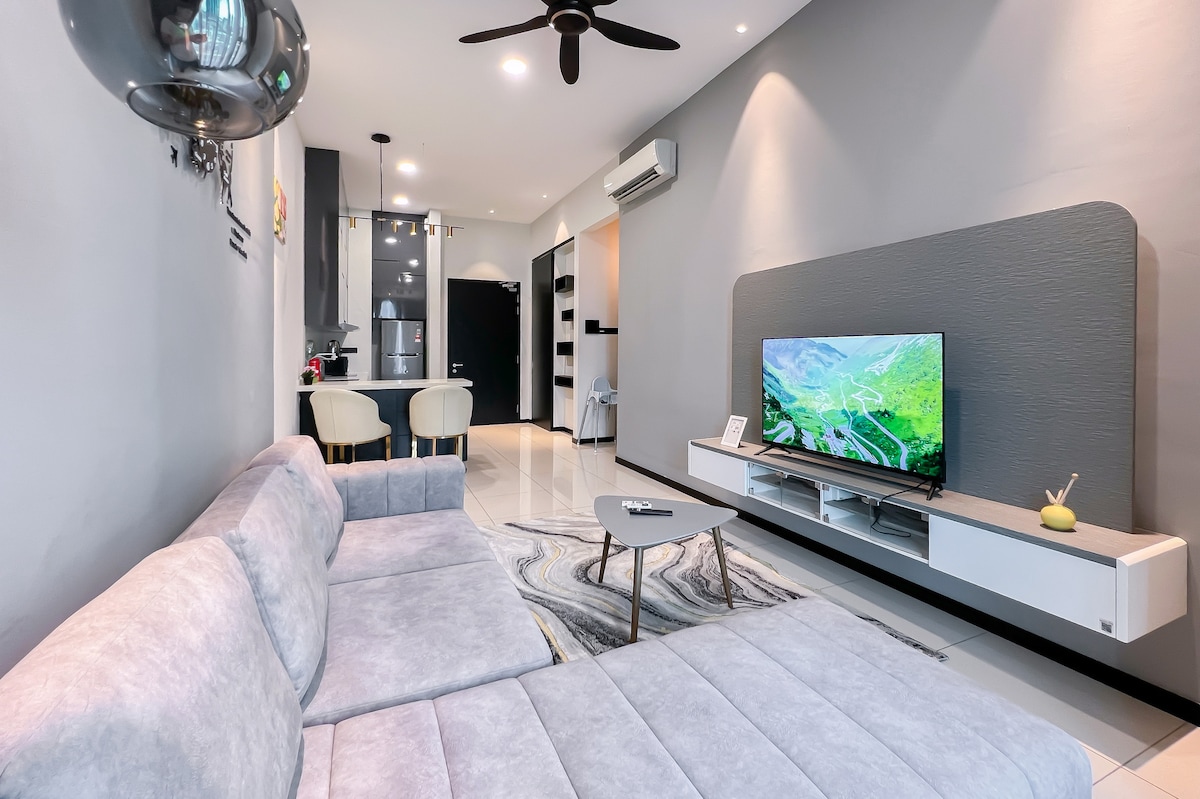 Este apartamento de 1 quarto vem com uma vista deslumbrante do horizonte de KL. Tem uma sala de estar com sofá de 3 lugares, mesa de jantar, cozinha, escrivaninha e uma grande varanda de frente para a Torre KL e as Torres Gêmeas Petronas. Vem com uma TV de 55”, WIFI de alta velocidade e uma cama tamanho Queen que pode acomodá-lo confortavelmente. *A outra unidade deste apartamento de chave dupla é um estúdio compacto com cama tamanho Queen, despensa, lavabo e banheira. Pode caber em amigos que viajam com você com privacidade. Sinta-se bem-vindo para pedir mais informações!