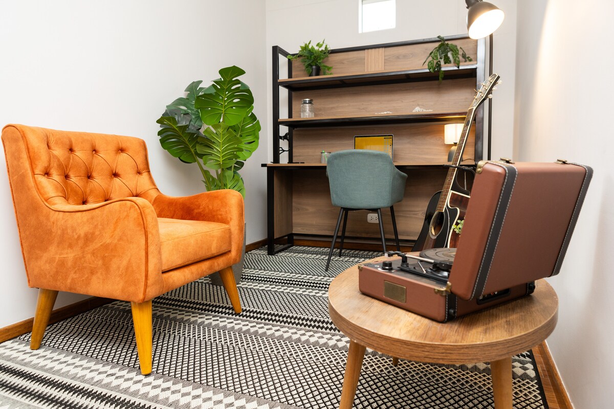 Duplex espaçoso, luminoso e elegante no coração de Miraflores. Área social acolhedora no 4º andar e dois quartos confortáveis no 5º, perfeitos para descansar em privacidade. Check-in autónomo, cozinha equipada, Internet de fibra óptica de 200 Mbps, elevador, garagem coberta gratuita e segurança 24 horas por dia, 7 dias por semana. Ideal para casais ou viajantes de negócios que procuram conforto e uma excelente localização. A poucos passos de restaurantes, cafés, lojas e a apenas 8 minutos a pé de Larcomar, da esplanada e das praias.