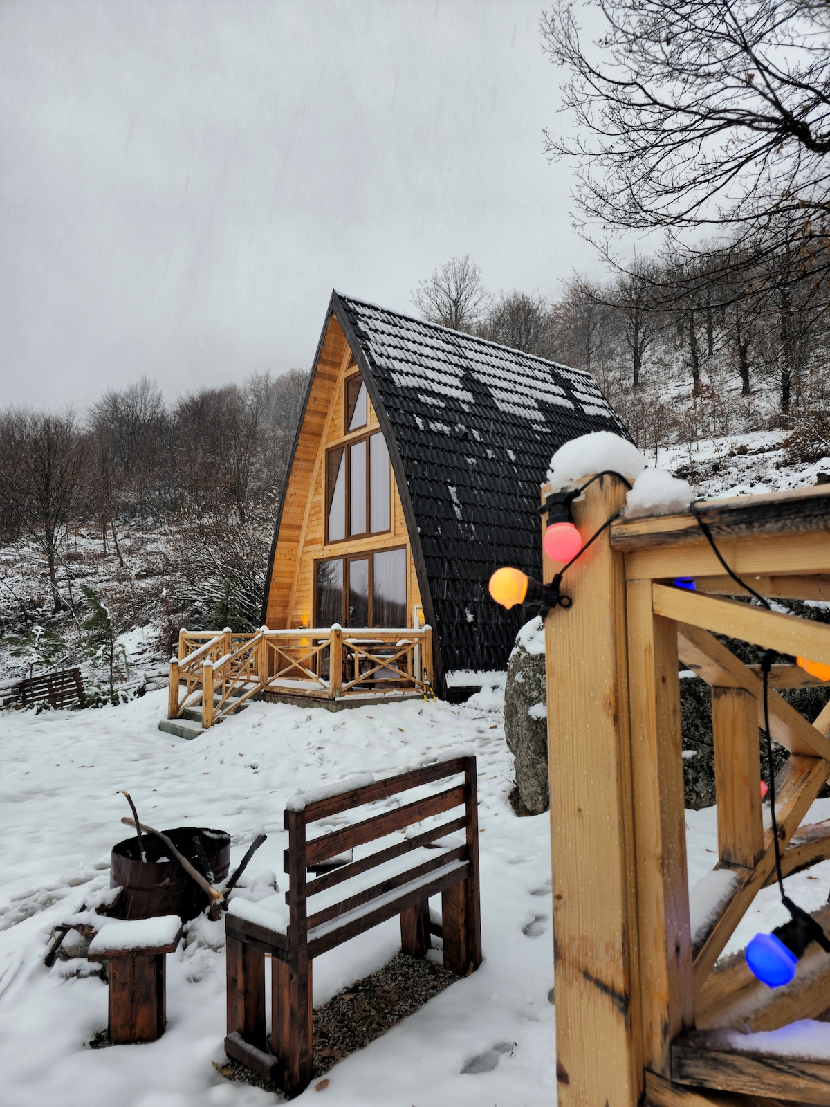 Reconecte-se com a natureza nesta escapadela inesquecível. Pequena cabana de madeira na encosta da montanha de Boga. Uma lufada de ar fresco a 1000 m acima do nível do mar. Fechado por pinheiros, picos brancos e terras verdes. A 50 minutos de carro do Parque Nacional Theth e a 20 minutos da varanda Qafa e Thores. Andi, o anfitrião encantador irá guiá-lo para trilhos de caminhada, passeios nas quintas próximas e comida local. Lugar pequeno, grande impressão. Esta é uma segunda casa nova da Andi.