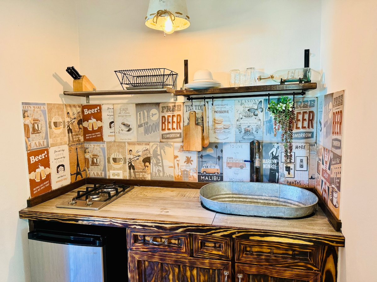 Stella é a nossa mais nova casa de campo no iL Sognatore. Lá fora você vai desfrutar de um lindo jardim. Dentro você vai experimentar o charme do velho mundo de móveis de madeira feitos à mão: armários, armários de cozinha, armários, cama e cadeiras altas. Tem uma área de jantar e uma cozinha acoplada com uma geladeira grande. O quarto dispõe de uma cama tamanho queen e uma área de estar. Além disso, uma porta deslizante leva ao seu próprio banheiro privativo. O iL Sognatore tem Wi-Fi em todo o local, estacionamento seguro dentro do complexo.