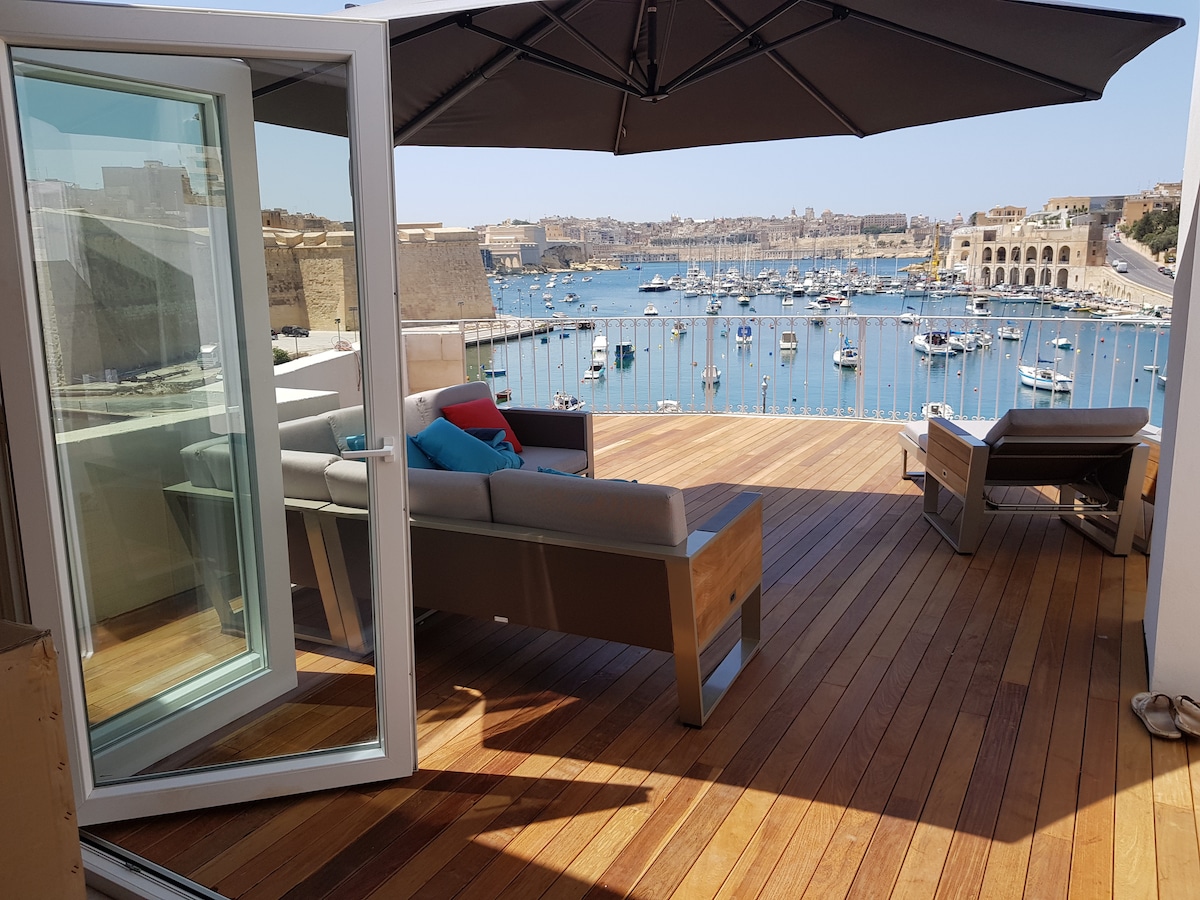 You are welcomed to enjoy your stay in Malta at this fabulous seafront penthouse guest suite uniquely located with commanding views of the Kalkara creek, flanked by the Vittoriosa bastions, Fort St Angelo and with Valletta skyline as a backdrop, and of course the Grand Harbour in between. Licensed by the Malta Tourism Authority, License number: HF10975