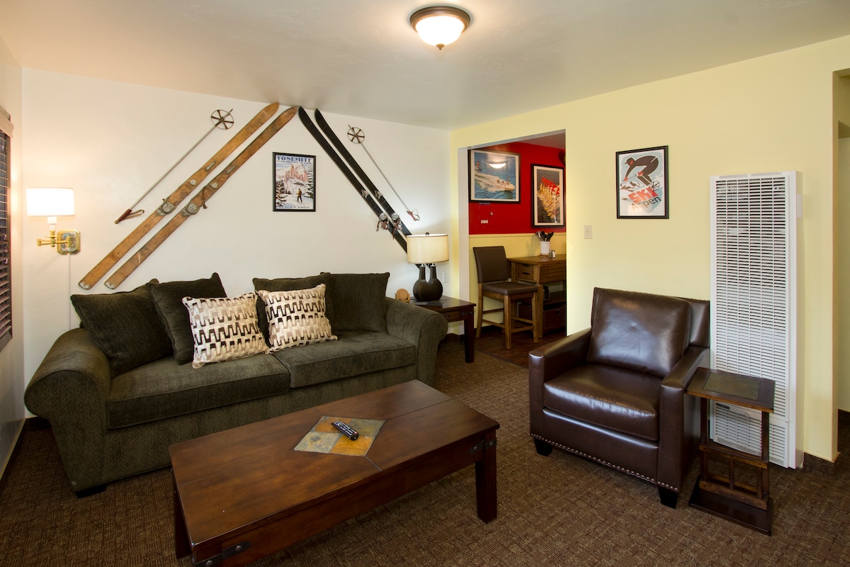 Steps to the Village Gondola that goes to Canyon Lodge. Large studio that sleeps up to 4 guests. King bed and a queen sleeper. Fully stocked kitchenette with stove top and Micro, mini Fridge and dishwasher. Access to most hotel amenities Except concierge and ski valet. Enjoy Whitebark Restaurant/Bar in the lobby. Gas fireplace and free internet. No Resort Fees and parking in the heated garage. Same level as the Pool, Jacuzzi, Gym.