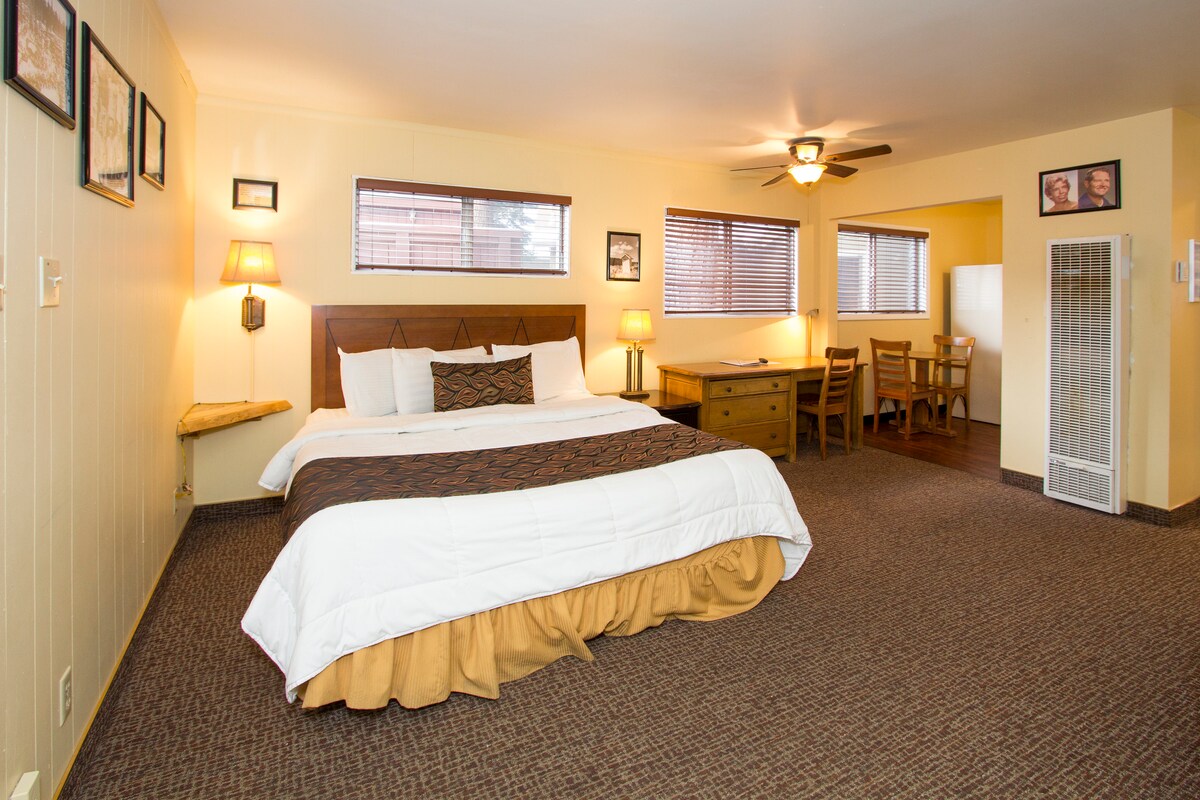 ** NO CLEANING FEES This studio sleeps 2 people on a King bed and 2 on a pull out sofa bed. It incudes a kitchenette (NO stove/oven) with a fridge, microwave, and a flat-screen TV with cable. Please Note: Holiday Haus is 100% smoke free, portable cooking devices are strictly prohibited and we do not allow pets. TOT (tax I.D. 5097)