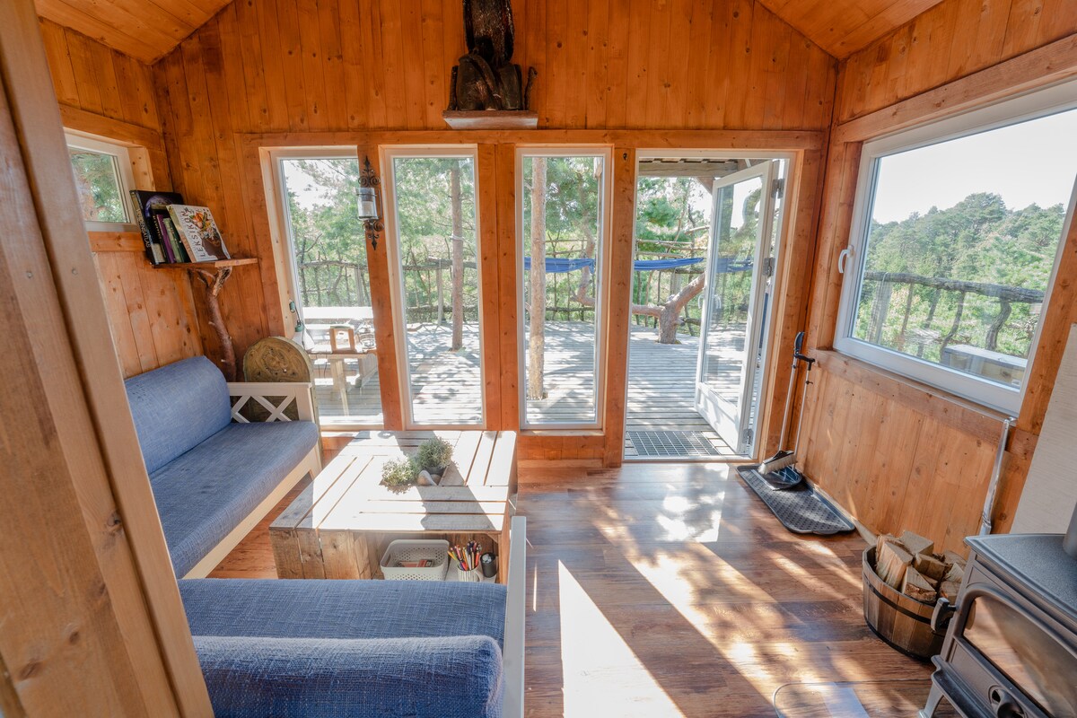 Casa na árvore de luxo! Sauna, canoa e água de pesca.