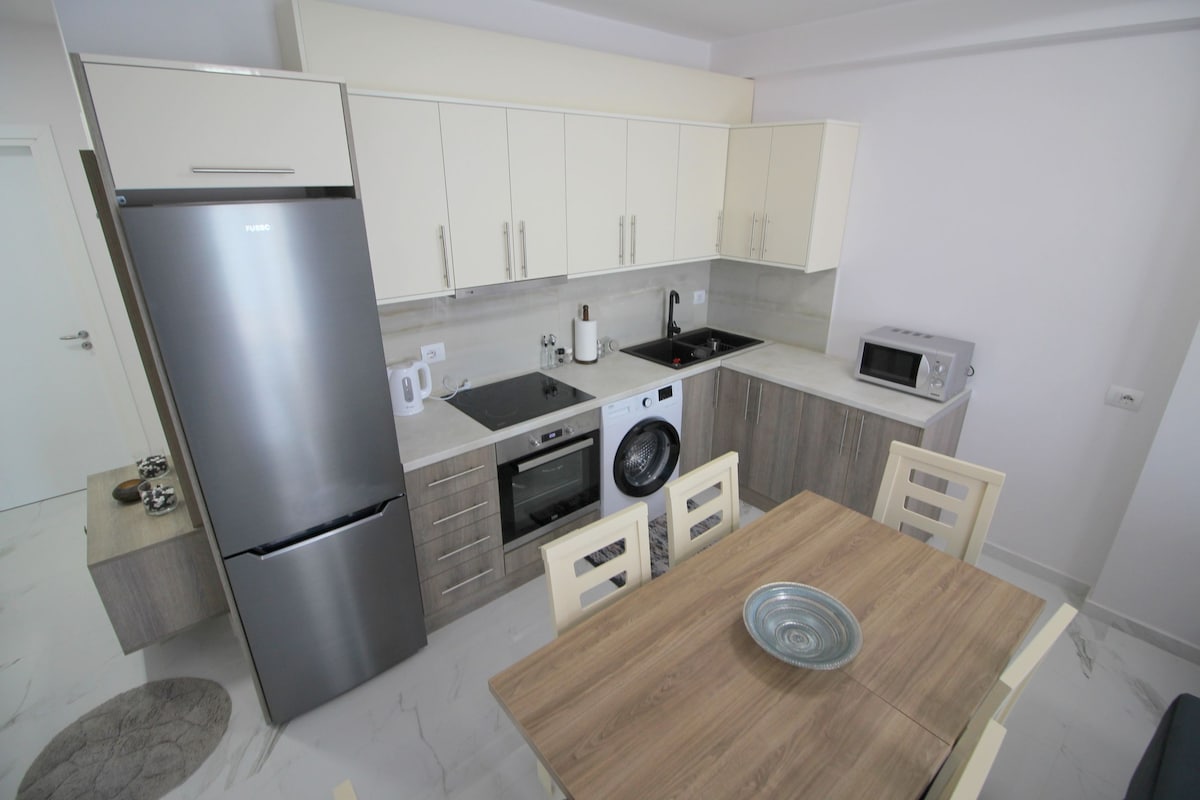 O apartamento fica num novo edifício, com novos móveis modernos e com todas as comodidades necessárias. Localizado na zona turística n.º 1 de Saranda, com alguns dos melhores restaurantes, resorts à beira-mar e as praias mais limpas e seguras, como "Mango Beach", "Santa Quaranta", ect. O apartamento está orientado para o mar e pode desfrutar do mar Jónico, bem como Corfu no fundo. A limpeza é exemplar e a nossa hospitalidade estará sempre no máximo. Esperamos hospedá-lo logo que possível.