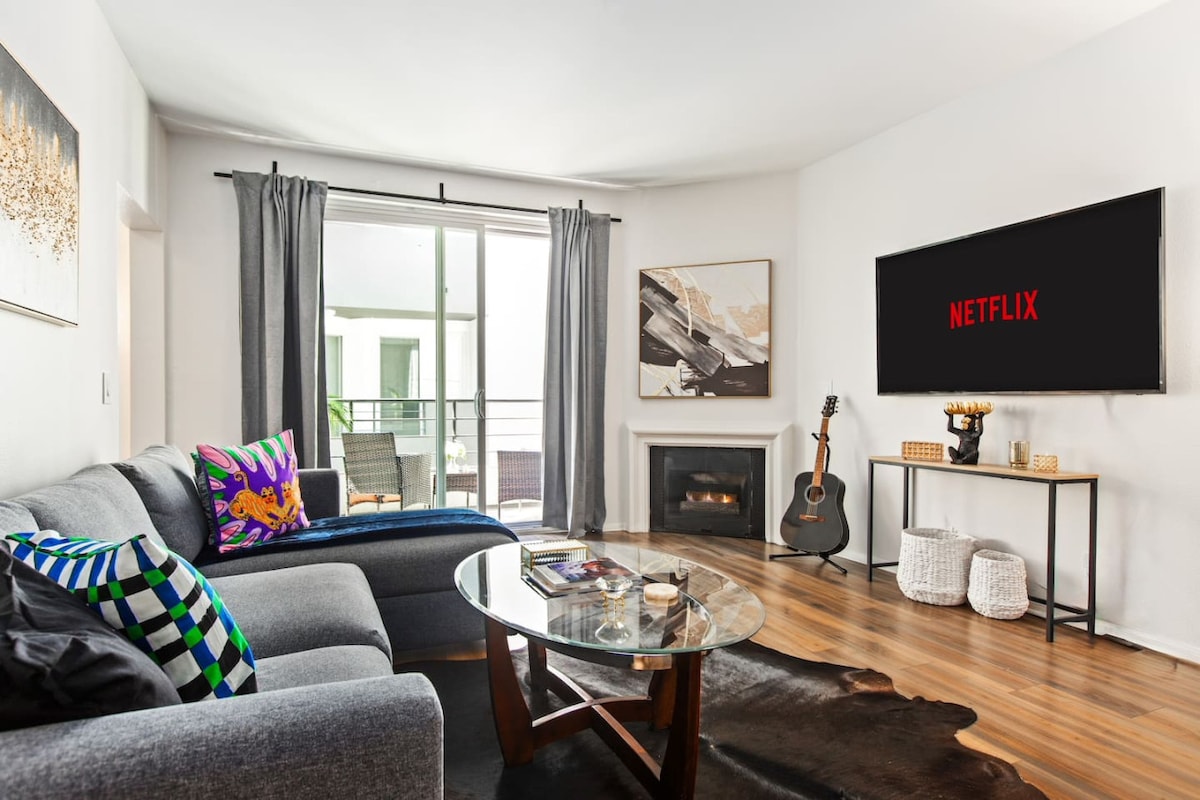 Retiro 🌟 elegante e moderno de 1 quarto em Santa Mônica 🌟 Fuja para um elegante apartamento de 1 quarto com proximidade à praia. Este espaço elegante dispõe de uma cama queen size aconchegante💑, decoração 🏡moderna e uma cozinha totalmente equipada🍳. Desfrute de Wi-Fi de alta velocidade📶, uma smart TV📺, lavanderia 🛠️na unidade e estacionamento seguro🚗. Perfeitamente localizado perto de restaurantes🍽️, lojas 🛒e aventuras costeiras 🏖️— sua melhor viagem espera por você!