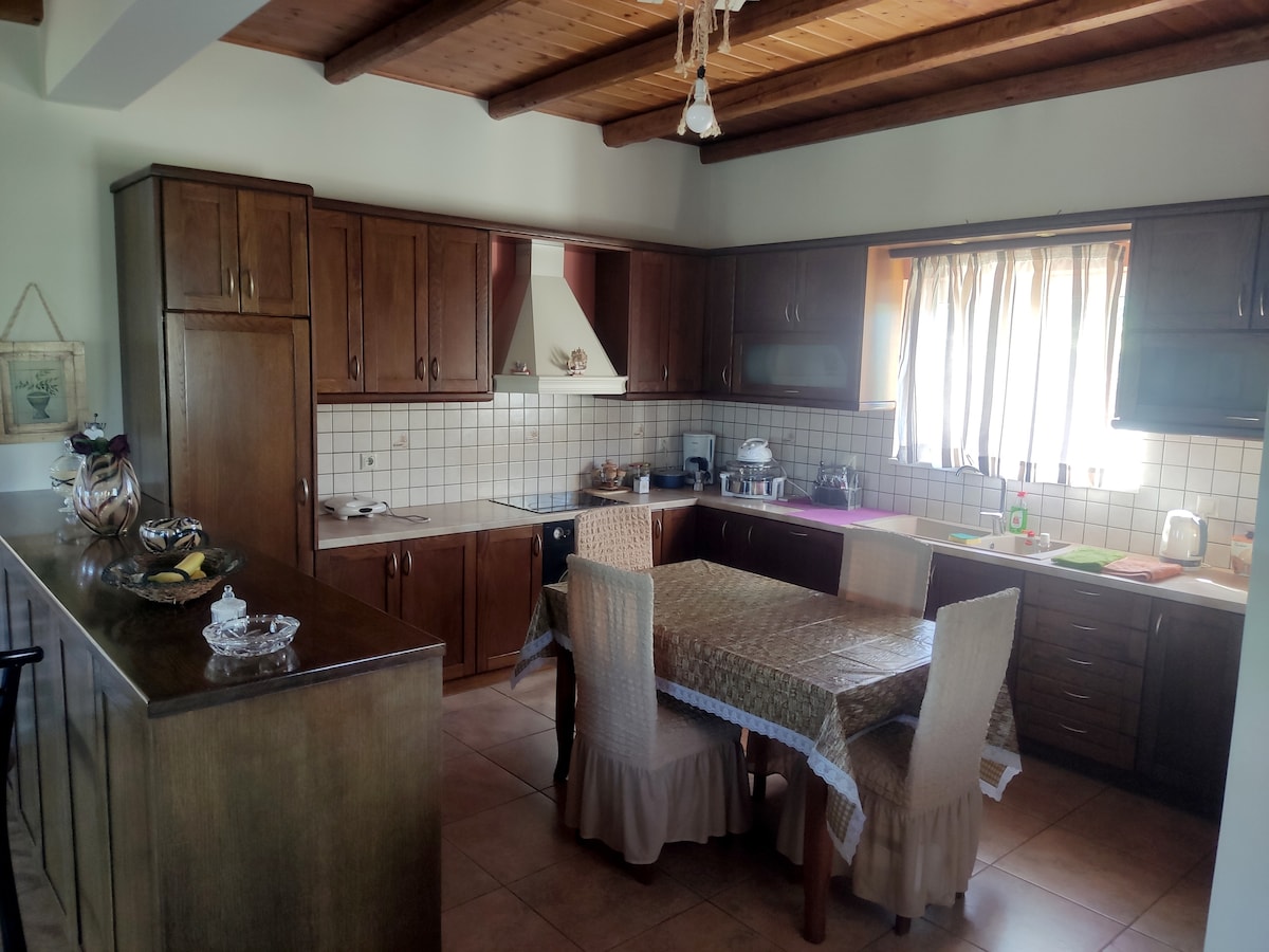 Το σπίτι είναι στην αρχή του μικρού και γραφικού χωριού που λέγεται Μακρυχώρι! Μπορεί να φιλοξενήσει έως 6 άτομα, διαθέτει εξοπλισμένη κουζίνα όπου ο επισκέπτης μπορεί να ετοιμάσει το γεύμα του.Το σπίτι έχει εκπληκτική θέα και η γύρω περιοχή είναι καταπράσινη.Η απόσταση από την κοντινότερη παραλία είναι 20 λεπτά,στα 2 χιλιόμετρα υπάρχει ο καταρράκτης "Μανηκιατης" όπου ενδείκνυται για μπάνιο και ορειβασία, ακόμη στο χωριό υπάρχουν διαδρομές για πεζοπορία και ένα όμορφο ταβερνάκι για χαλάρωση!