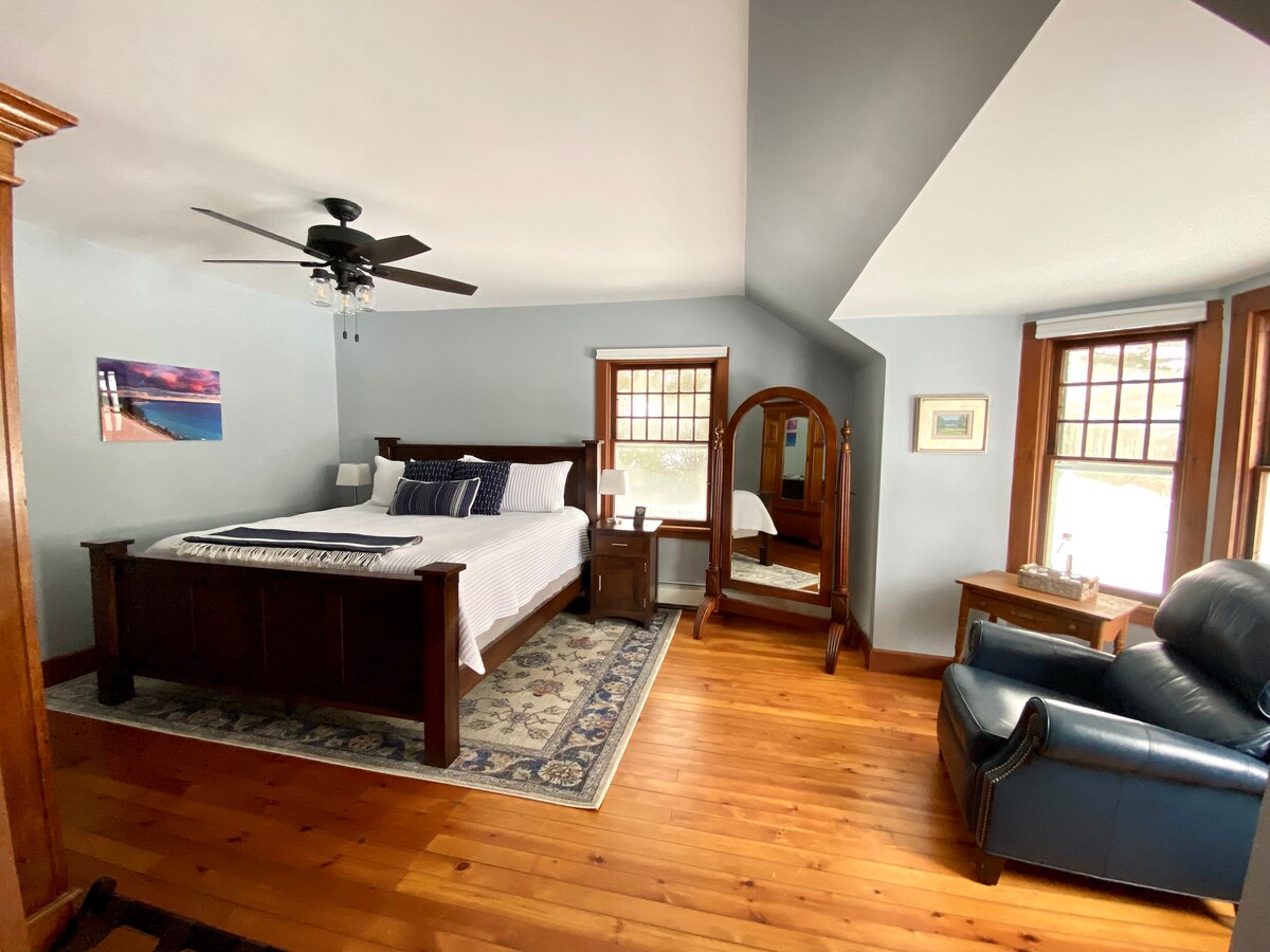 Esta casa renovada de 1900 fica a 3 quarteirões do centro da cidade e a 9/10 de milha da 1st Street Beach. Este quarto tem uma cama king e uma cama completa. A casa de banho completa com chuveiro está localizada do outro lado do corredor e partilhada apenas com uma pessoa, o proprietário. Embora a casa tenha ar condicionado central, este quarto superior recebe o sol de oeste à noite, o que pode tornar o quarto um pouco mais quente à noite em dias de sol. Um segundo ventilador pode ser fornecido mediante pedido. Desfrute de um pequeno-almoço completo de manhã e de um café-bar aberto 24 horas por dia.
