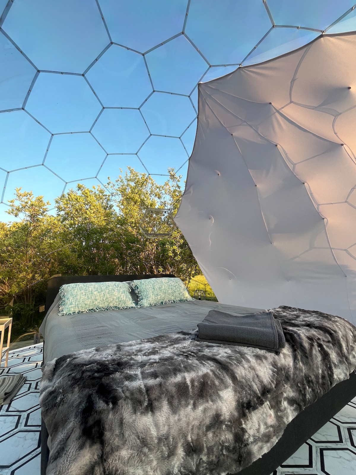 Experimente uma nova forma de acampar. Toda a natureza, sem complicações. Nossas cúpulas de acampamento são sua "Cúpula longe de casa." Um refúgio romântico perfeito, único e luxuoso, suas janelas panorâmicas oferecem uma vista privilegiada para a natureza. As cúpulas acomodam confortavelmente 2 adultos. Os hóspedes optam por compartilhar a experiência com crianças o tempo todo, se você se sentir confortável em compartilhar o espaço, depende completamente de você! Os check-ins são às segundas, quartas e sextas-feiras. Se houver um conflito de agendamento, entre em contato conosco a qualquer momento.