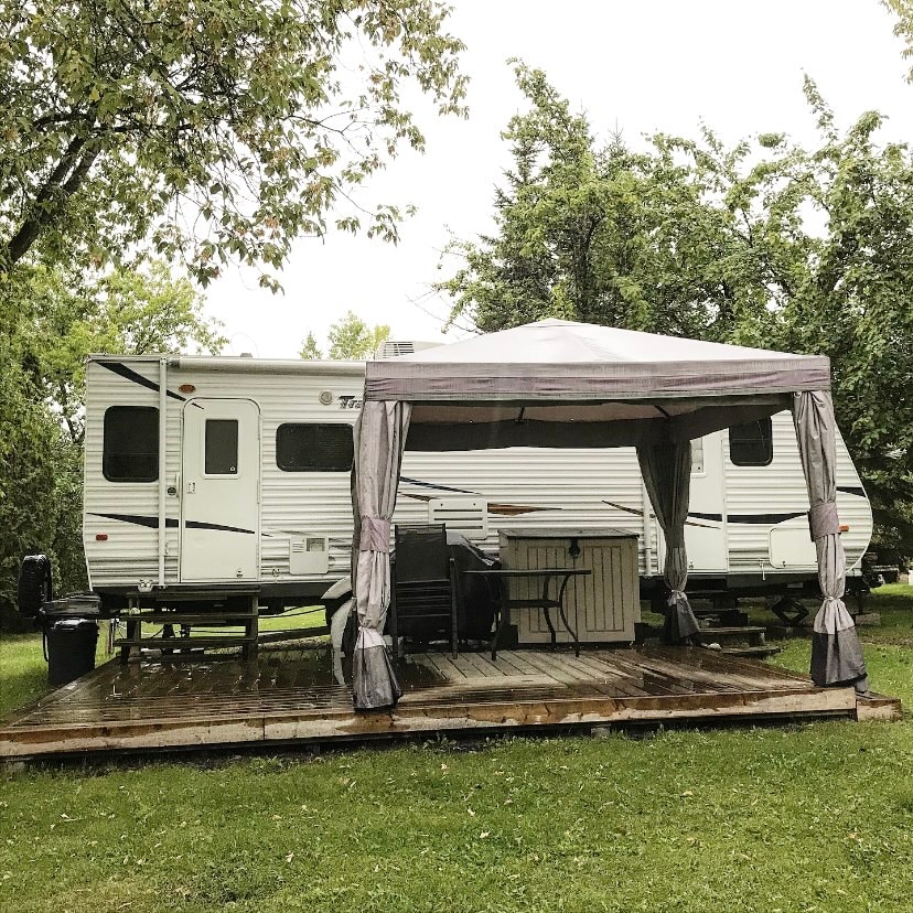 2006 Prowler 5th Wheel, muito espaço e vem com uma estadia num acampamento tranquilo e divertido localizado a pouco mais de uma hora a oeste de Winnipeg. Venha desfrutar da piscina, relaxar numa das nossas banheiras de hidromassagem, navegue pelo rio num metro ou SUP ou faça uma corrida nas bolas UAU (caminhe sobre bolas de água). Há uma loja de conveniência, chuveiros, instalações de casa de banho, minigolfe e muito mais. Caravanas, iurtas e tendas disponíveis. O Ofty 's Riverside Campground tem o que precisa para ter uma experiência memorável.