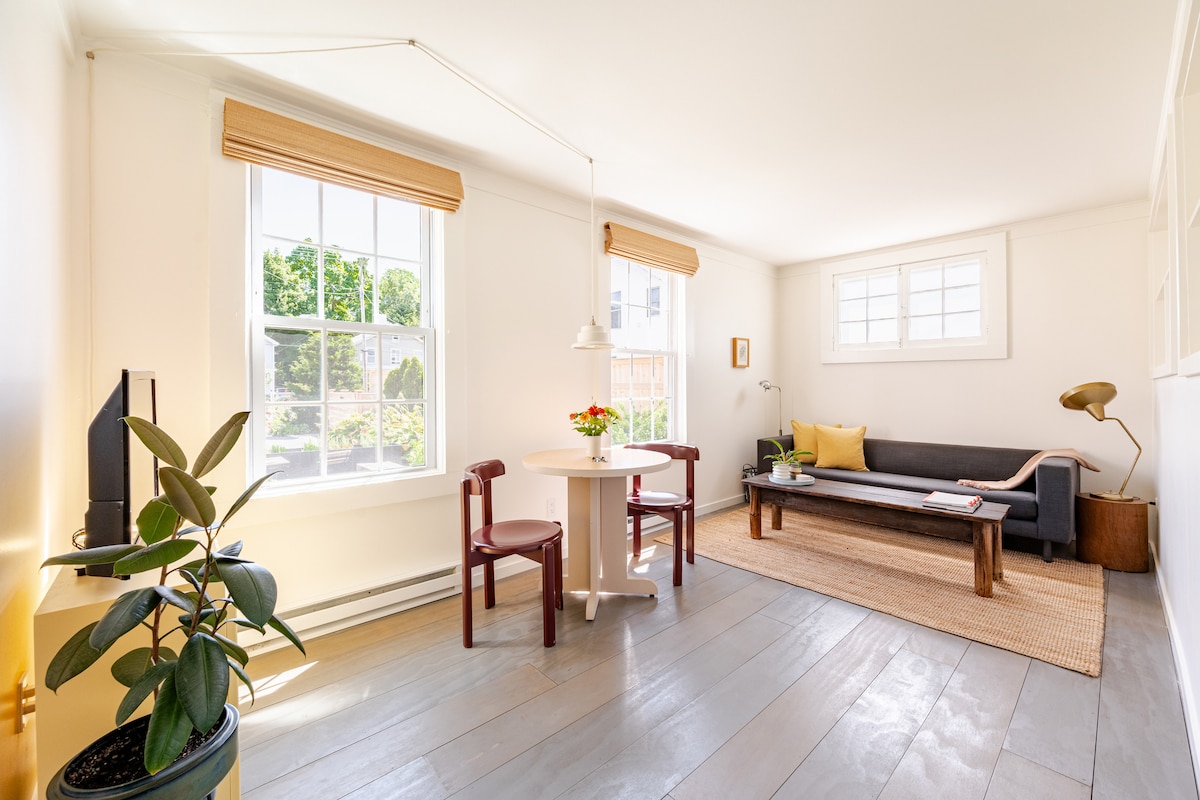 Pine Place é um apartamento ensolarado e privado situado numa residência histórica. A casa apresenta tons de terra neutros entre brancos quentes, um espaço de estar em plano aberto, uma cozinha e acesso ao pátio da frente com um local para o pequeno-almoço.