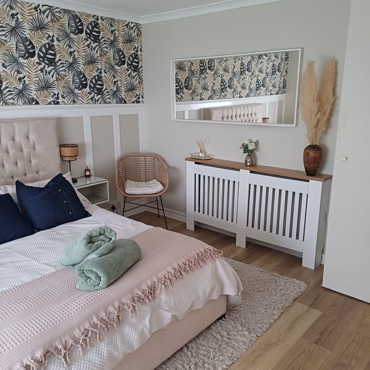 Bem-vindo ao seu apartamento acolhedor e moderno de 1 cama em Cliftonville, a apenas 5 minutos da praia e a 10 minutos da Cidade Velha de Margate. Este espaçoso apartamento no piso térreo tem uma entrada privada, uma cama king de luxo e um design calmo e elegante. Desfrute do sol da manhã no seu pátio privado, um oásis de jardim frondoso com fetos, bambu e uma bananeira. Um refúgio tranquilo e acolhedor perto de cafés, galerias e da orla marítima, perfeito para relaxar depois de um dia a explorar as melhores praias, lojas vintage e locais de restauração de Margate.