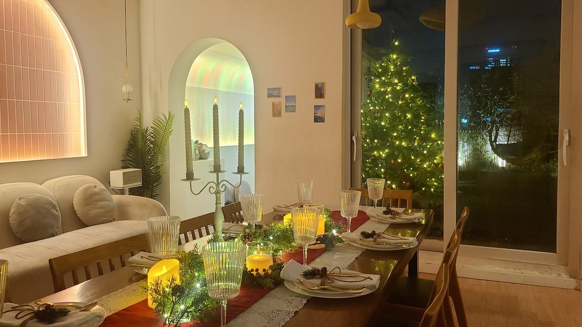 크리스마스 트리+텐트+난로/독보적 시티뷰 루프탑 바베큐 파티룸/역 1초/4인 기준 가격