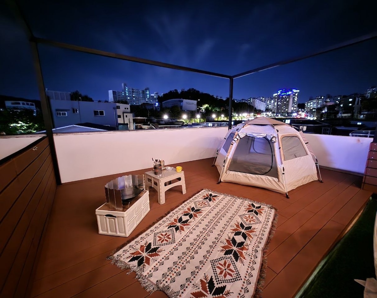 강남 루프탑 글램핑 감성 숙소(베드룸2, rooftop, barbecue,Netflix)