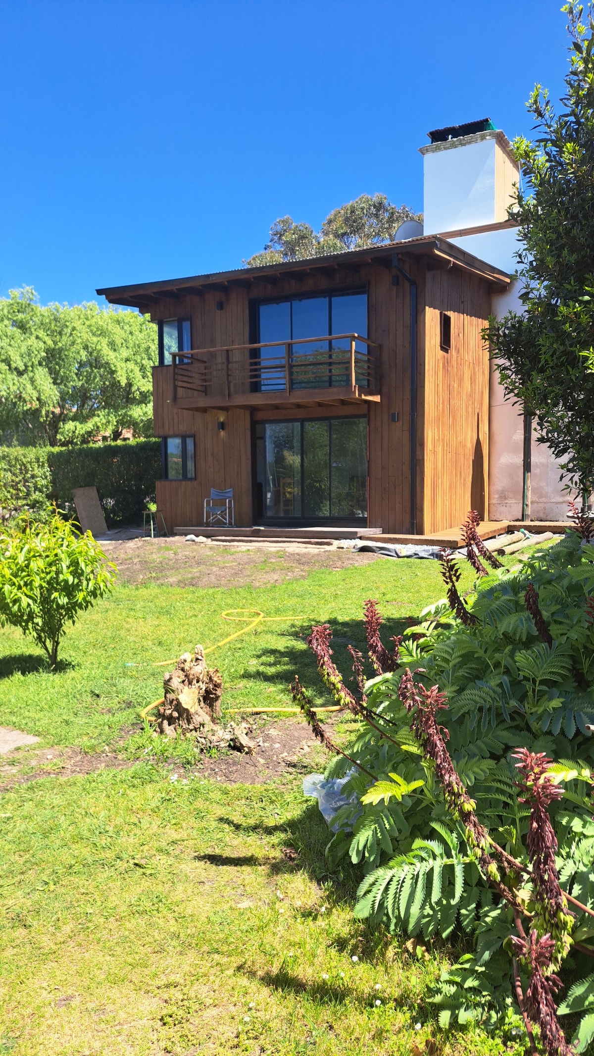 En Bosque Peralta Ramos casa alpino reciclada, moderna, espaciosa, práctica y luminosa. Dentro de una propiedad de 2000 m2. Comparte espacio con otras dos casas, y en una de ellas vivo yo con mis 3 perros. Las casas tienen privacidad y un parque enorme. Tiene quincho con parrilla y fogón. Está a 10 minutos de las playas de sur. El entorno es mágico. Tengo hermosas experiencias y comentarios de quienes nos visitaron.