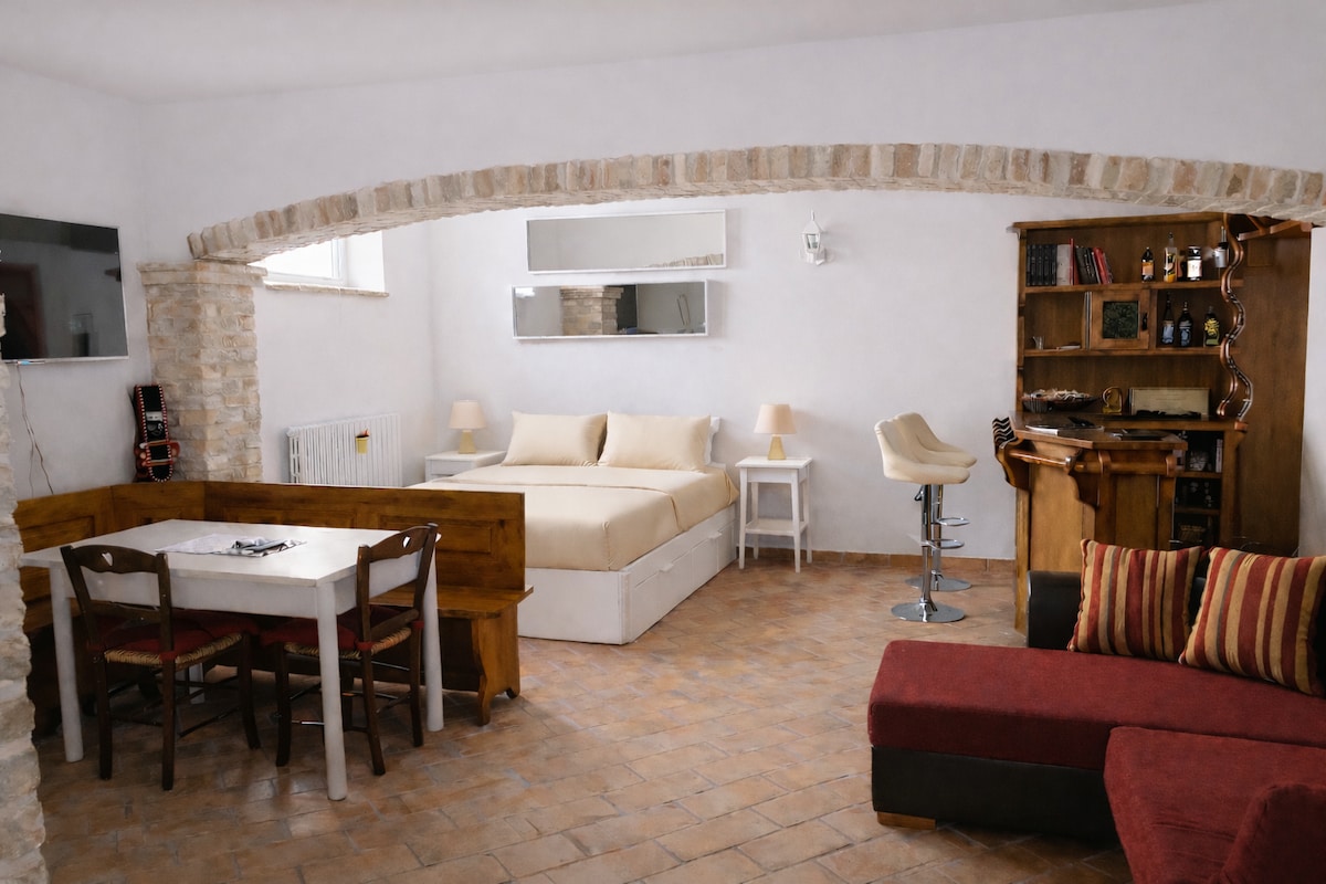 Bem-vindo(a) ao Borgo & Mare, um estúdio acolhedor no coração de Sirolo, ideal para desfrutar da aldeia e chegar ao mar confortavelmente a pé. Espaço bem cuidado e funcional para casais, famílias ou pequenos grupos com até 4 pessoas. Área de estar com kitchenette equipada, sofá-cama de casal, cama de casal numa área reservada, casa de banho com chuveiro e máquina de lavar roupa. Localizada numa zona pitoresca e tranquila, perfeita para passeios e para explorar praias, a natureza e restaurantes típicos.