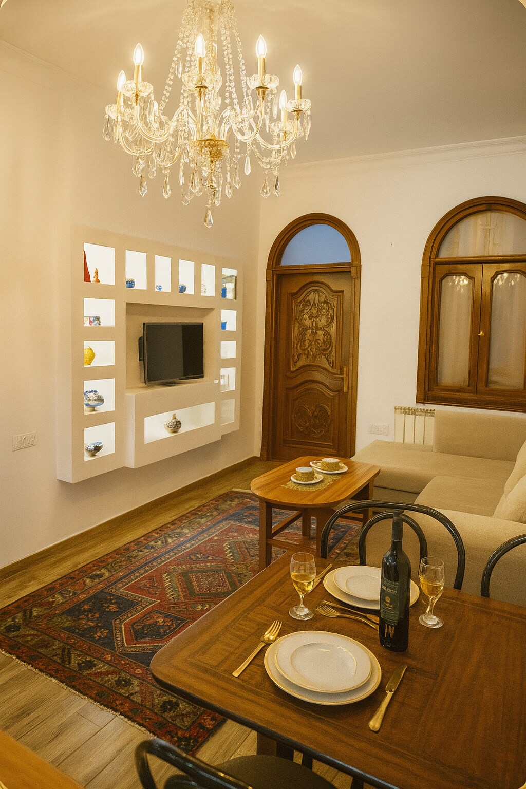 Apartamento acolhedor no coração e interior da histórica cidade de Baku em "Icheri Sheher". O apartamento com uma localização ideal está localizado perto da estação de metro "Icheri Sheher", a rua "Trade" (Nizami), "Fountain Square", "Seaside Boulevard", bem como a dois passos de atrações como a "Maiden Tower", a uma curta distância a pé dos pontos turísticos do "Palácio de Shirvanshahs", "Praça Vahid", "Museu do Livro Miniature", lojas com lembranças, restaurantes com cozinha nacional e europeia.