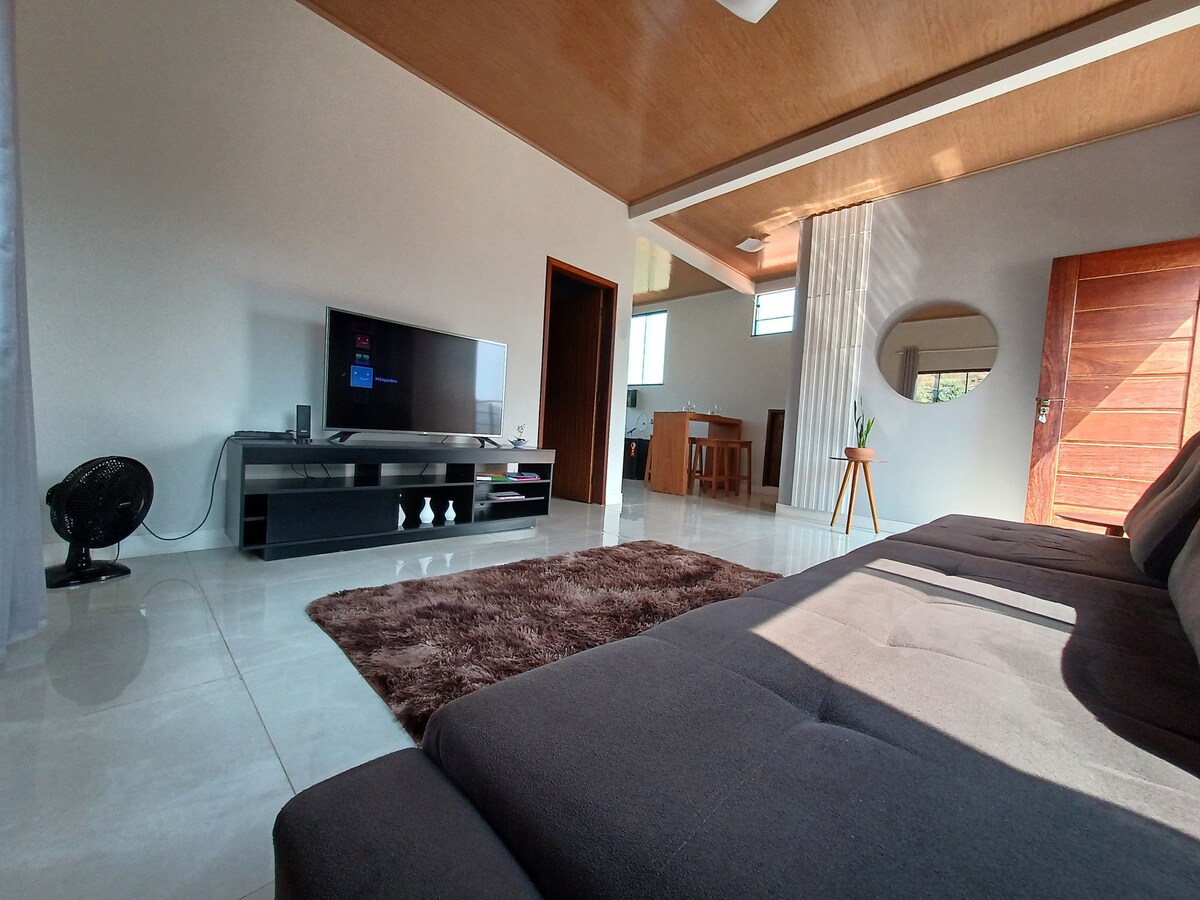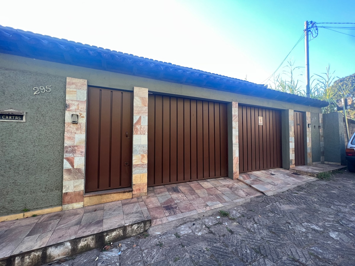 [Espaço inteiro] Bem-vindo a nossa encantadora casinha no alto do bairro Cabanas! A sala equipada com um sofá aconchegante e uma TV de tela plana. A entrada de muita luz natural, proporciona uma atmosfera arejada e luminosa durante todo o dia. Além de um posto de trabalho confortável com internet acessível, há uma área externa privativa composta de churrasqueira e maquina de lavar. Fica 10min do centro de carro (3km) e cerca de 20min de ouro preto. Temos garagem (não coberta)