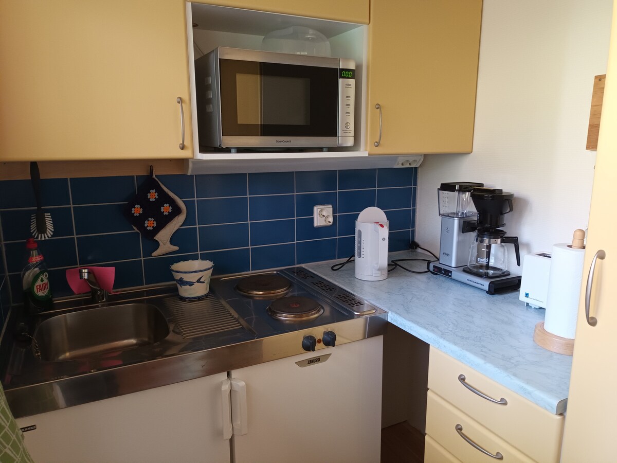 O apartamento de 57 m ² fica no quarto andar com o número 12. Tem uma varanda de 13 m² a oeste com alguma vista para a entrada do porto. 150 metros abaixo da casa fica o passeio marítimo onde pode chegar ao terminal de ferry em 15 minutos. Na rua, há autocarros para o centro da cidade de Mariehamn. Uma garagem pertence ao apartamento. O elevador está disponível. O apartamento é alugado pelo menos 5 noites seguidas. Observação: os lençóis e toalhas não estão incluídos.